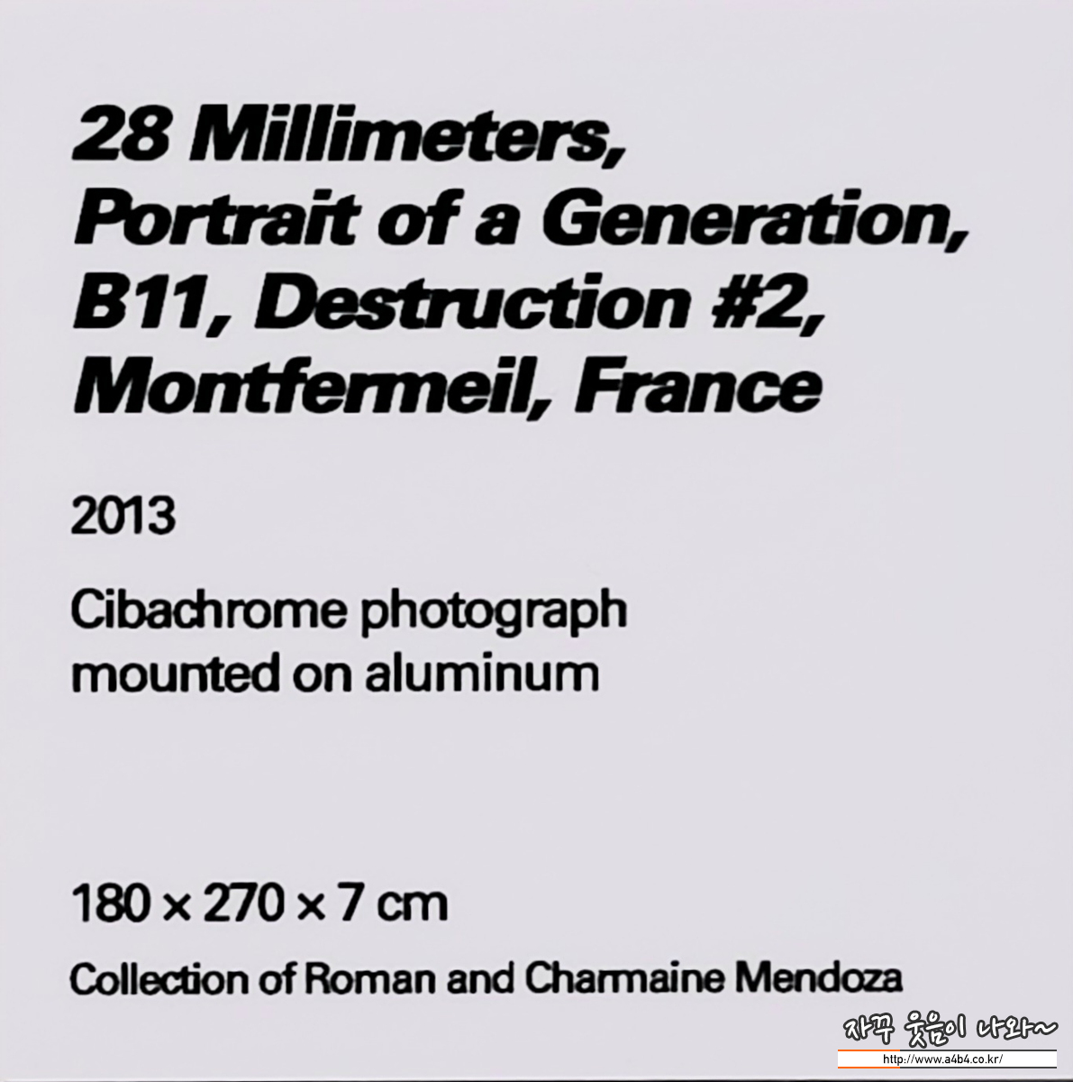 < 세대의 초상 > 에 등장하는 인물들은 파리 교외 지역인 몽페르메유의 주거 단지 '레부스케'와 클리시수부아의 '라포레스티에흐'에 사는 청년들입니다. 제이알의 첫 공공 프로젝트인 < 세대의 초상 ) 은 2005년 파리에서 발생한 소요사태 중 본격적으로 진행됩니다. 2005년 경찰의 검문을 피해 발전소에 숨어든 두 소년이 감전 사고로 사망하는 사건이 발생합니다. 이로 인해 대규모 폭동이 몽페르메유를 포함한 파리 여러 지역에서 발생하면서 후드 티를 입고 얼굴을 가린 청년들이 자동차를 불태우고, 폭력을 행사하는 모습이 뉴스에 나오기 시작합니다.