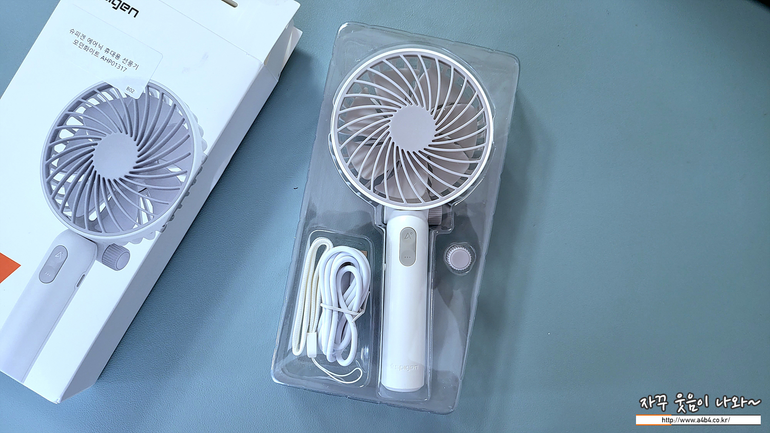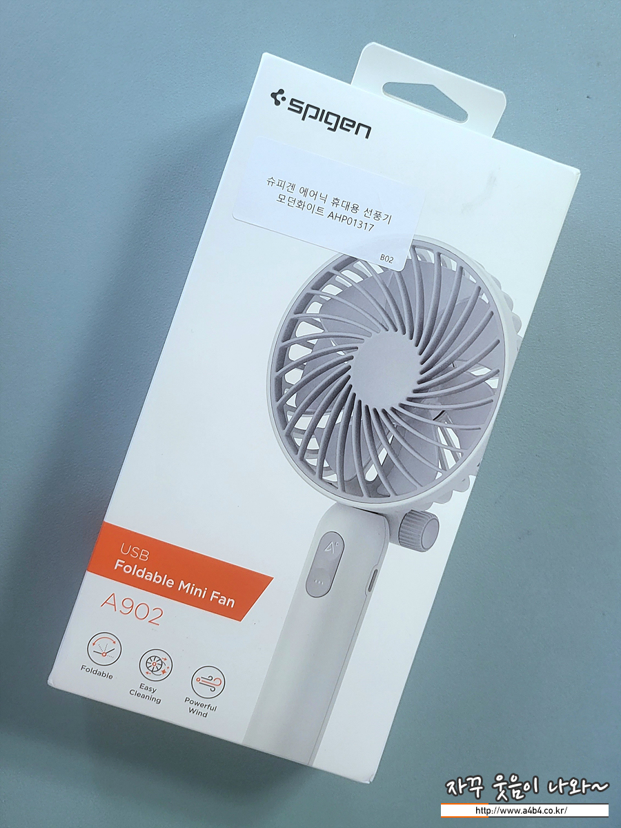 모델명은 A902 제품입니다. 정식 제품명은 '슈피겐 에어닉 휴대용 선풍기 AHP01317' 로 구입한 색상은 오던 화이트입니다. 슈피겐 선풍기는 쿠팡 로켓와우를 통해 22,650에 구입 했습니다. (최근에는 가격이 조금 오른 것 같네요)