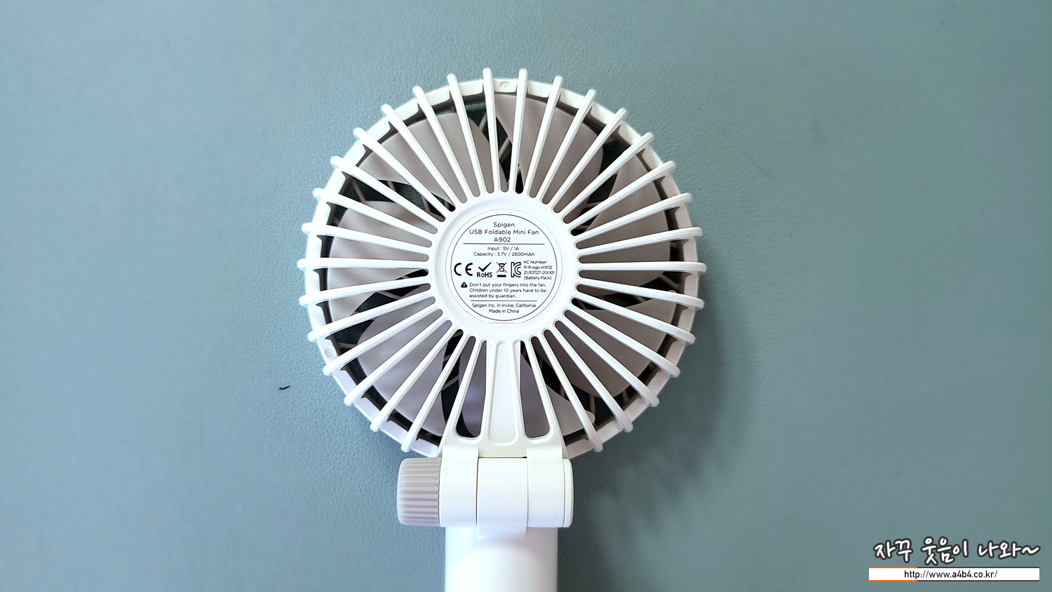 타사 제품의 경우 동일한 방식의 접이식 손선풍기라고 해도, 선풍기 결합 부분에 후크가 있어 사용시 흔들리지 않고 고정되게 처리되어 있는데, 이 부분에서 슈피겐 휴대용 선풍기의 아쉬운 부분이 생겼습니다.