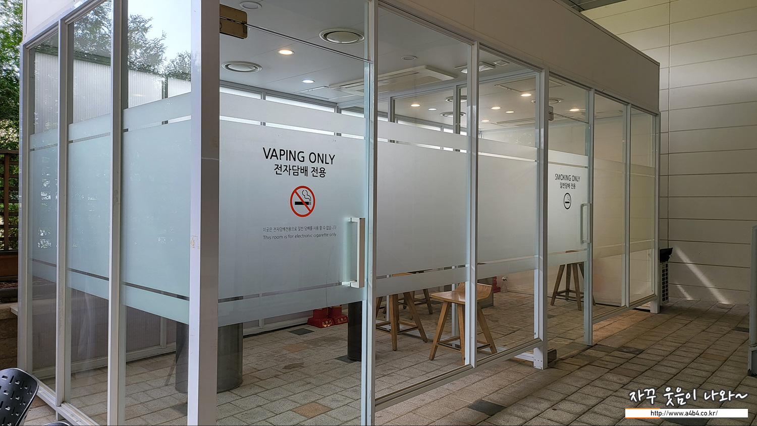 참고로 스타필드 흡연 부스는 전자담배와 일반담배 전용으로 분리되어 있습니다. 이 옆에서 라면과 간식을 팔고 먹을 수 있게 배치된 부분은 상당히 불만인데요.