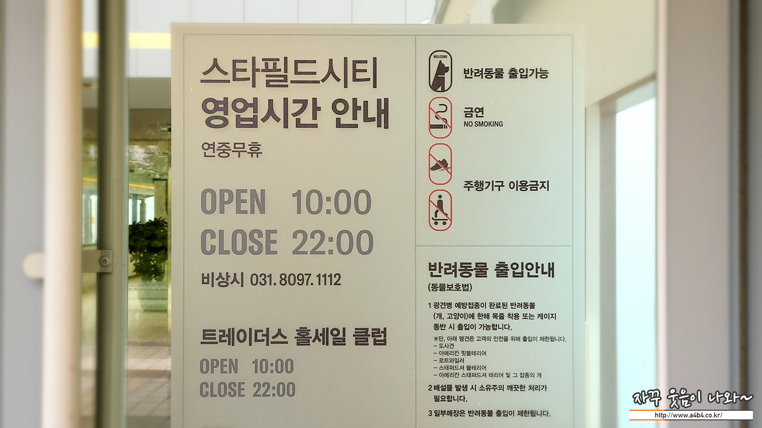 강아지와 함께하다 보니, 주말 쇼핑이나 장보기는 반려동물 입장이 가능한 곳을 선호하게 되네요. 집근처 롯데월드몰과 롯데월드타워는 반려견 동반이 불가능하다 보니, 거리가 있더라도 스타필드 같은 곳에서 쇼핑하게 되네요.