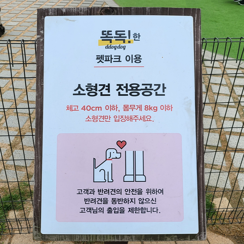 먼저 소형견 공간입니다. 체고 40cm이하 몸무게 8kg이하의 소형견만 입장이 가능한 공간입니다. 입장 조건이나 이용방식은 아주 상식적인 수준에서 이용하시면 됩니다.