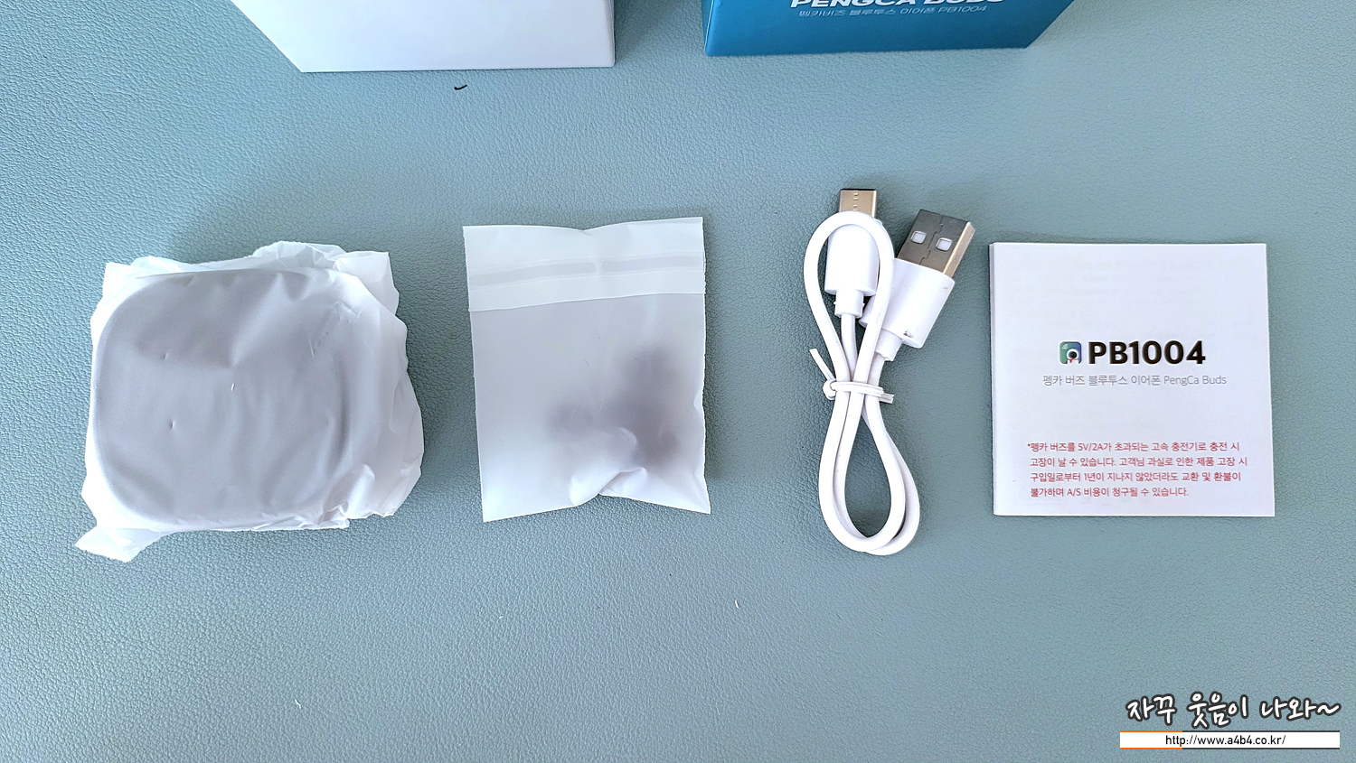 펭카 커널형 버즈 무선 블루투스 이어폰 제품 구성은 충전 및 휴대용 케이스와 버즈 본체, 이어팁, USB-C타입 충전 케이블, 간단 설명서로 구성되어 있습니다.