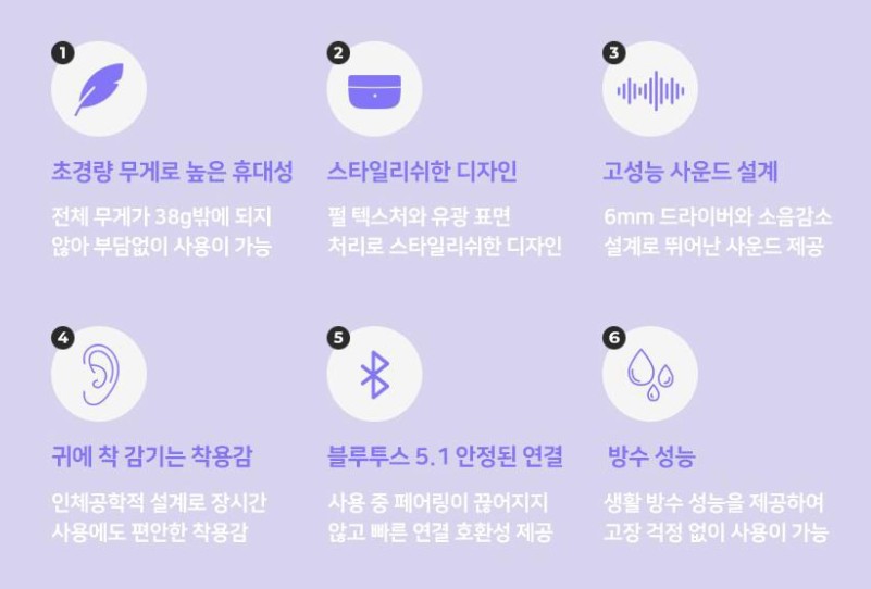 펭카버즈 이어폰 특징은 다음과 같습니다. 이중에서도 중요한 부분은 블루투스 5.1로 안정적인 페어링, 그리고 IPX4 생활방수 지원입니다. 이외에는 일반적인 무선이어폰 성능을 보입니다. (에어팟이나 갤럭시 버즈와 비교하면 도독놈이죠)