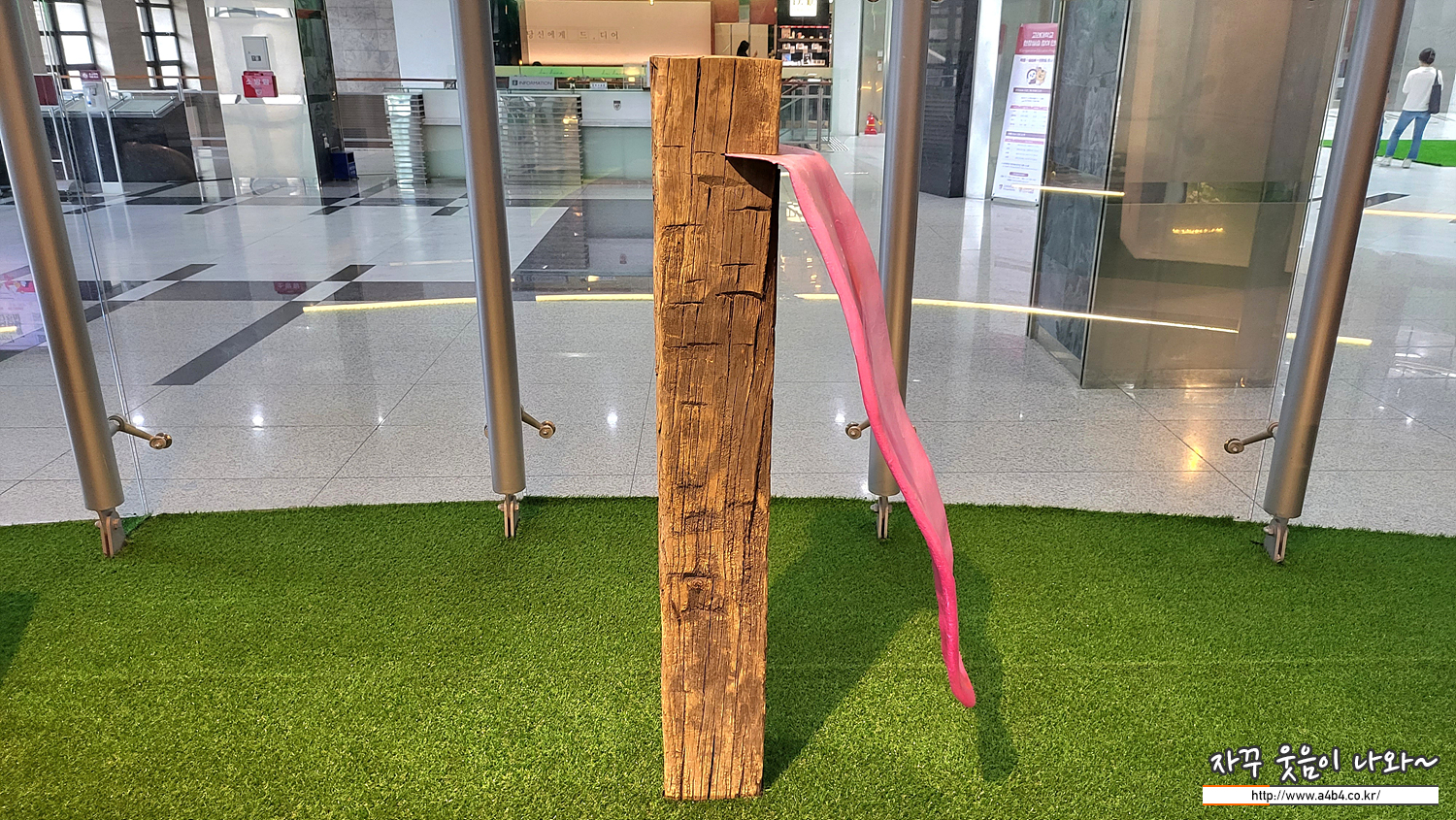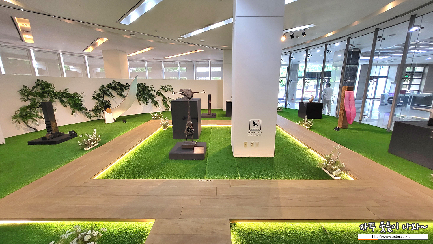 전시장은 이렇게 인조잔듸 위에 조각 작품들이 전시되어 있고 그 사이로 나무로 된 길이 있습니다. 길 밖으로는 나갈 수 없게되어 있는데요. 조각 작품 감상에 다소 거리가 있는 배치는 조금 아쉬운 부분입니다.