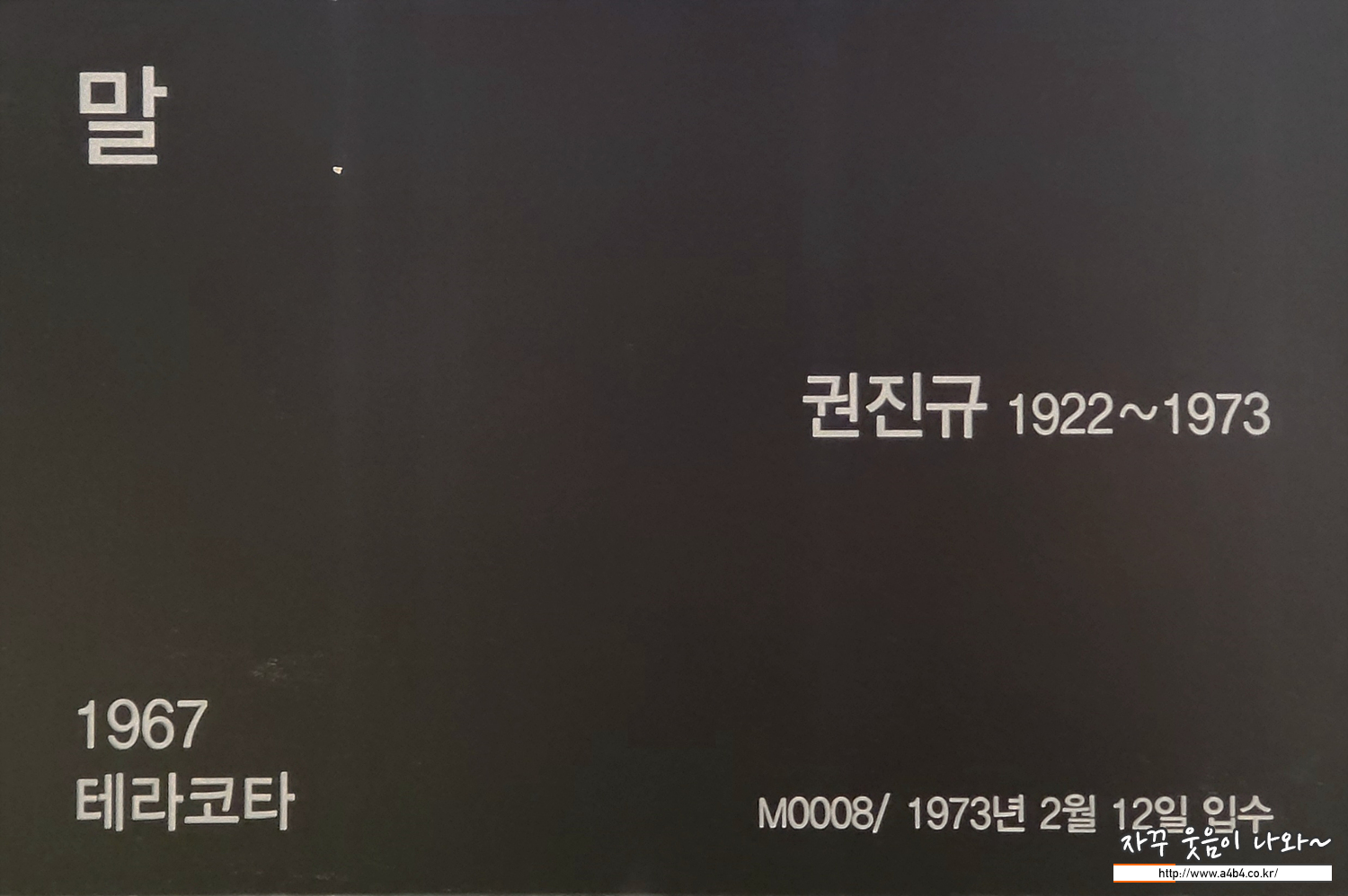 대한민국의 대표 조각가 중 한명입니다. 특히 테라코타 작품으로 우리에게 많이 알려진 작가이기도 하고요. 기억에 학창시절 미술교과서에도 실렸던 작품으로 기억 됩니다. 이외에도 이번 고려대학교 박물관 개관 50주년 전시회 '지천명에 화답하다' 전시회에서는 권진규 조각가의 다른 작품들도 만나볼 수 있습니다.