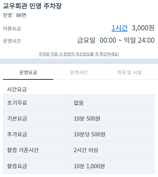 | 고려대학교 교우회관 주차요금 및 무료주차권