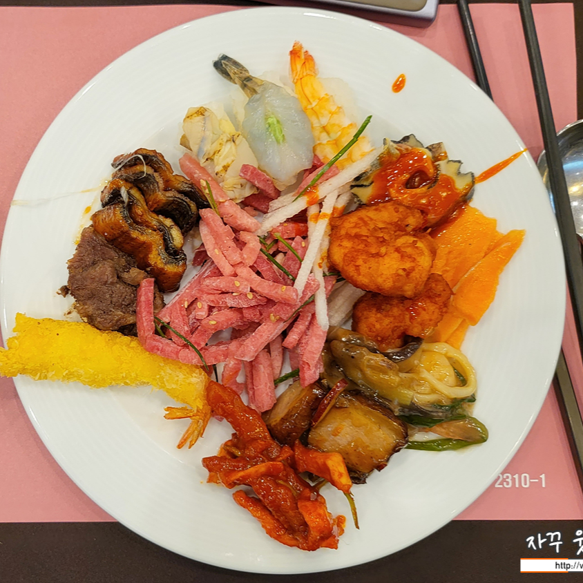 식당은 8명 정도가 앉는 원형 테이블과 음식은 뷔페식으로 준비되어 있습니다. 한 쌍만 두 시간 예식을 하니 하객이 중복될 걱정은 없고요. 음식도 잘 나오는 편입니다. 북적이지도 않고, 이모님들도 기업형 예식장처럼 테이블 채우기도 없어 일행과 함께 편하게 식사 가능합니다.