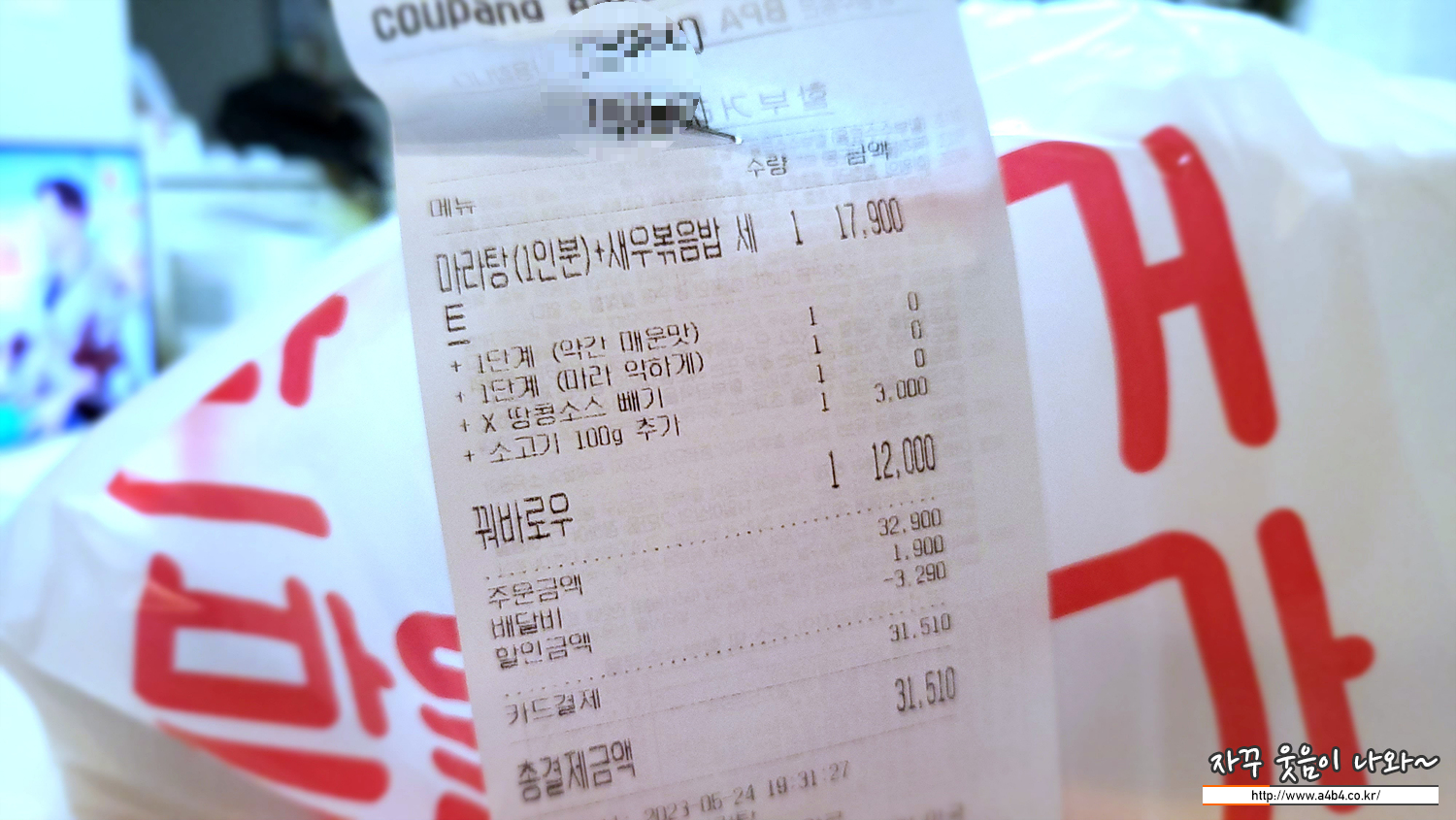 가격은 배달비 (프로모션 있어 0원)용 포함해서 31,510원에 주문 했네요. 보통 집까지 배달에는 30분 정도 소요됩니다.