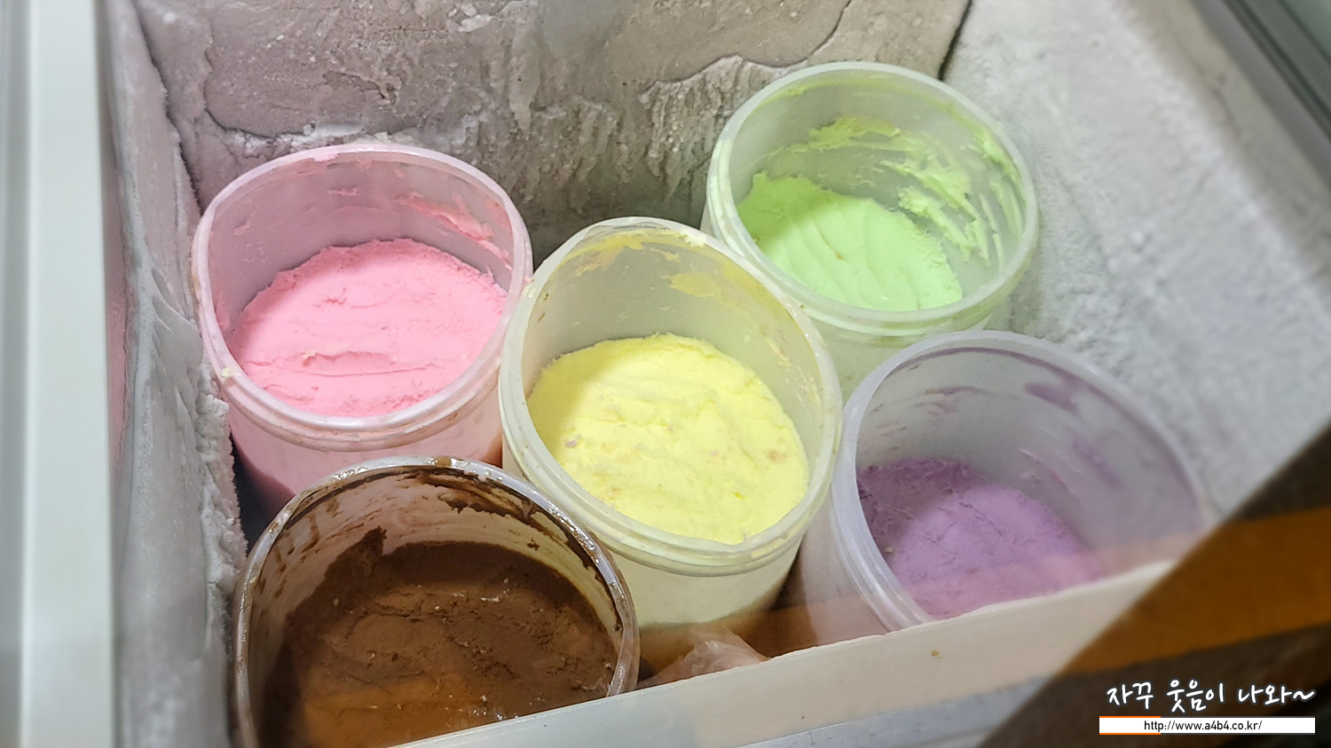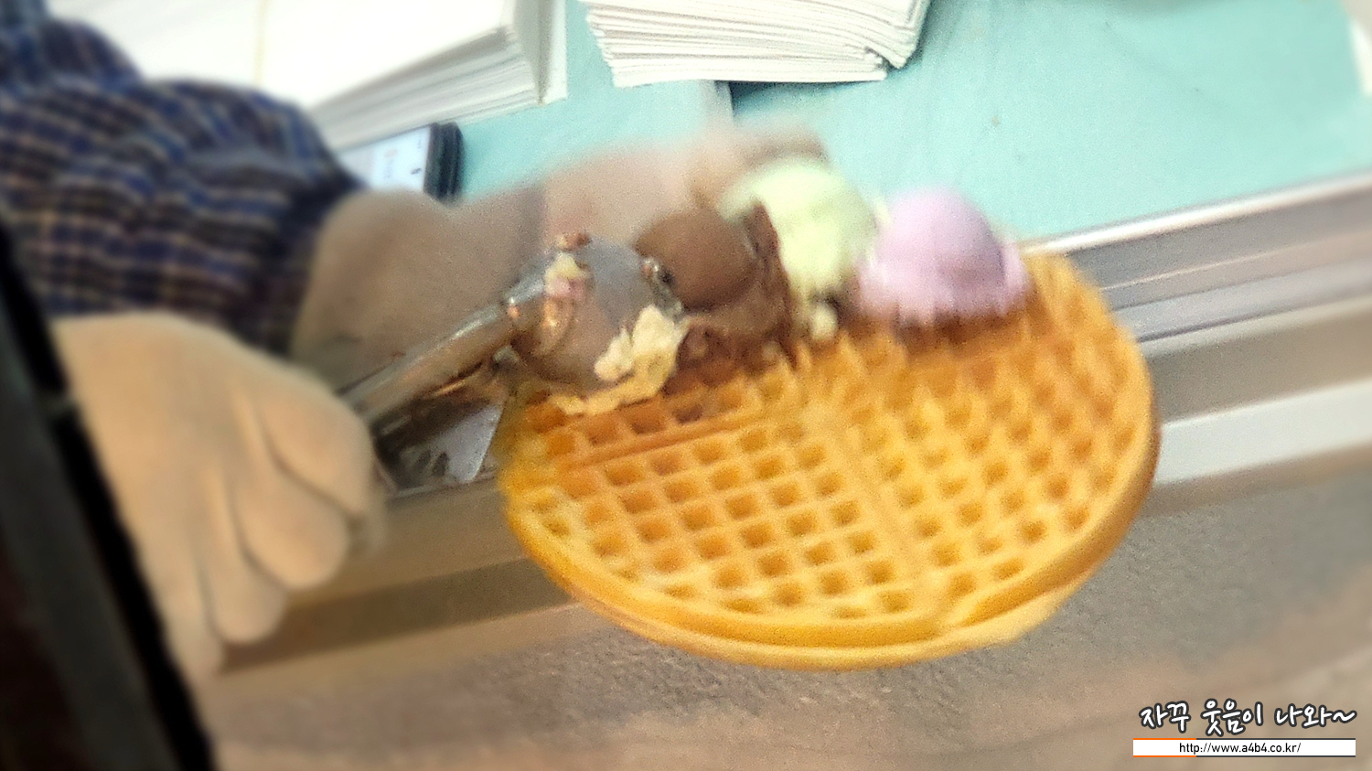 아이스 와플은 바로 와플 위에 4가지 맛 아이스크림이 올라갑니다. 분명 맛은 5가지 맛의 아이스크핌 통이 있는데요. 와플 위에는 4가지 아이스크림이 올라갑니다.