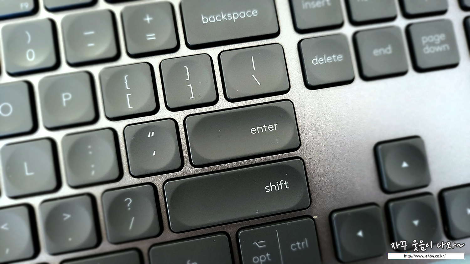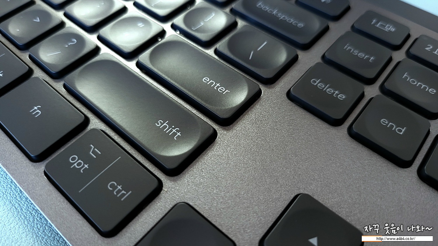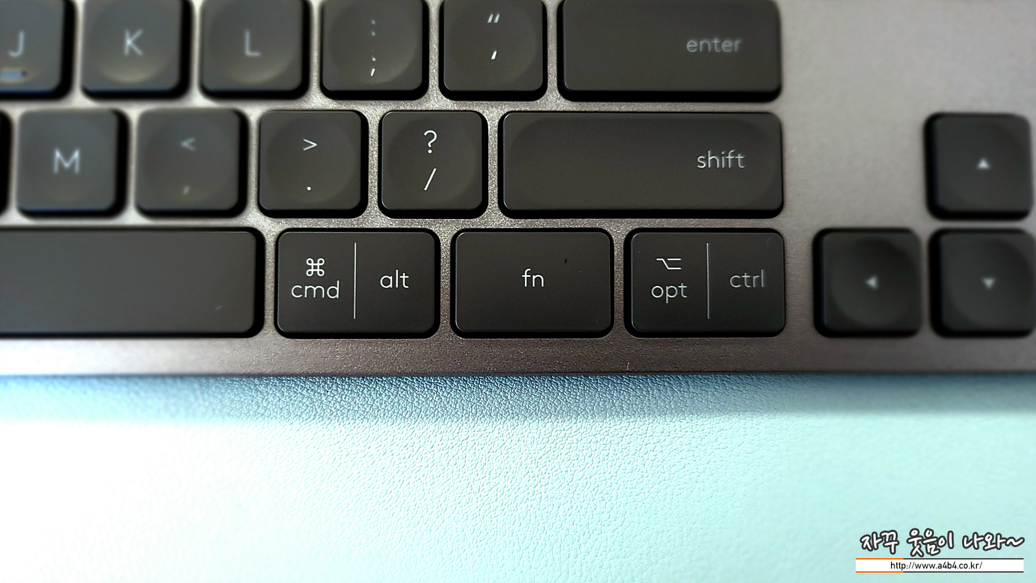 오늘 소개한 제품은 로지텍코리아 정식 제품이 아닌 병행수입제품입니다. 그래서 자판에 한글 및 한/영 실크처리는 없는데요. 키보드 스페이스바 기준 오른쪽의 cmd | alt 버튼으로 한영 전환이 가능합니다. (별도 설정 필요없음(