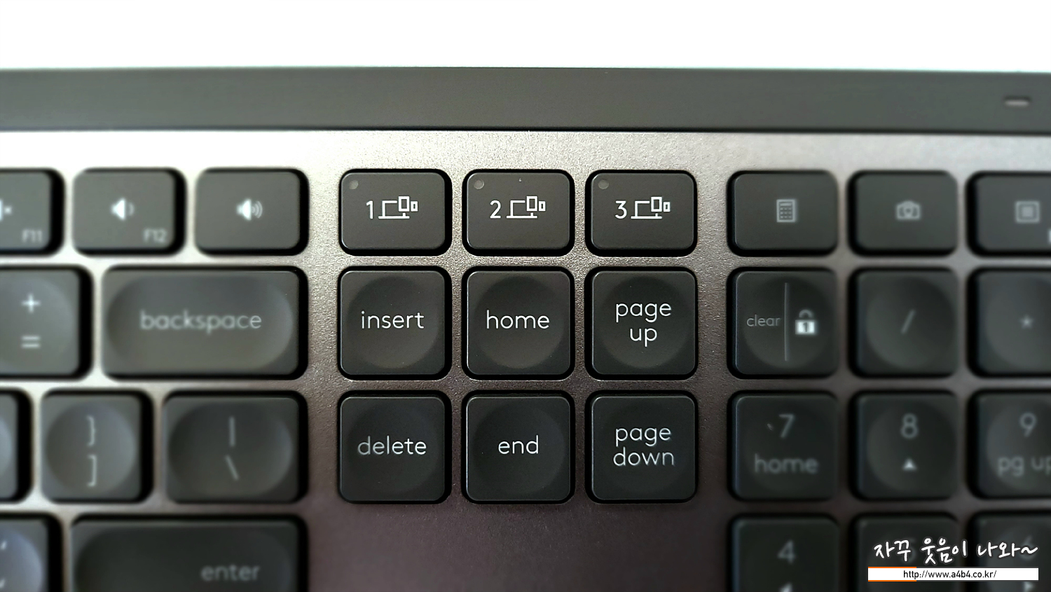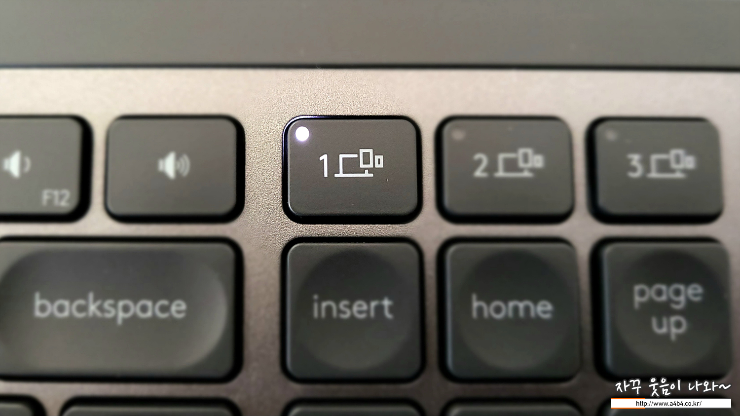 MX KEYS 로지텍 키보드 장점 중 하나는 이렇게 3개의 기기간 연결 및 전환이 쉽게 별도의 키가 생성되어 있습니다.