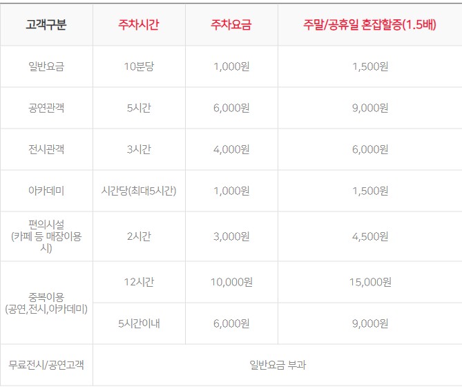 | 예술의전당 주차요금