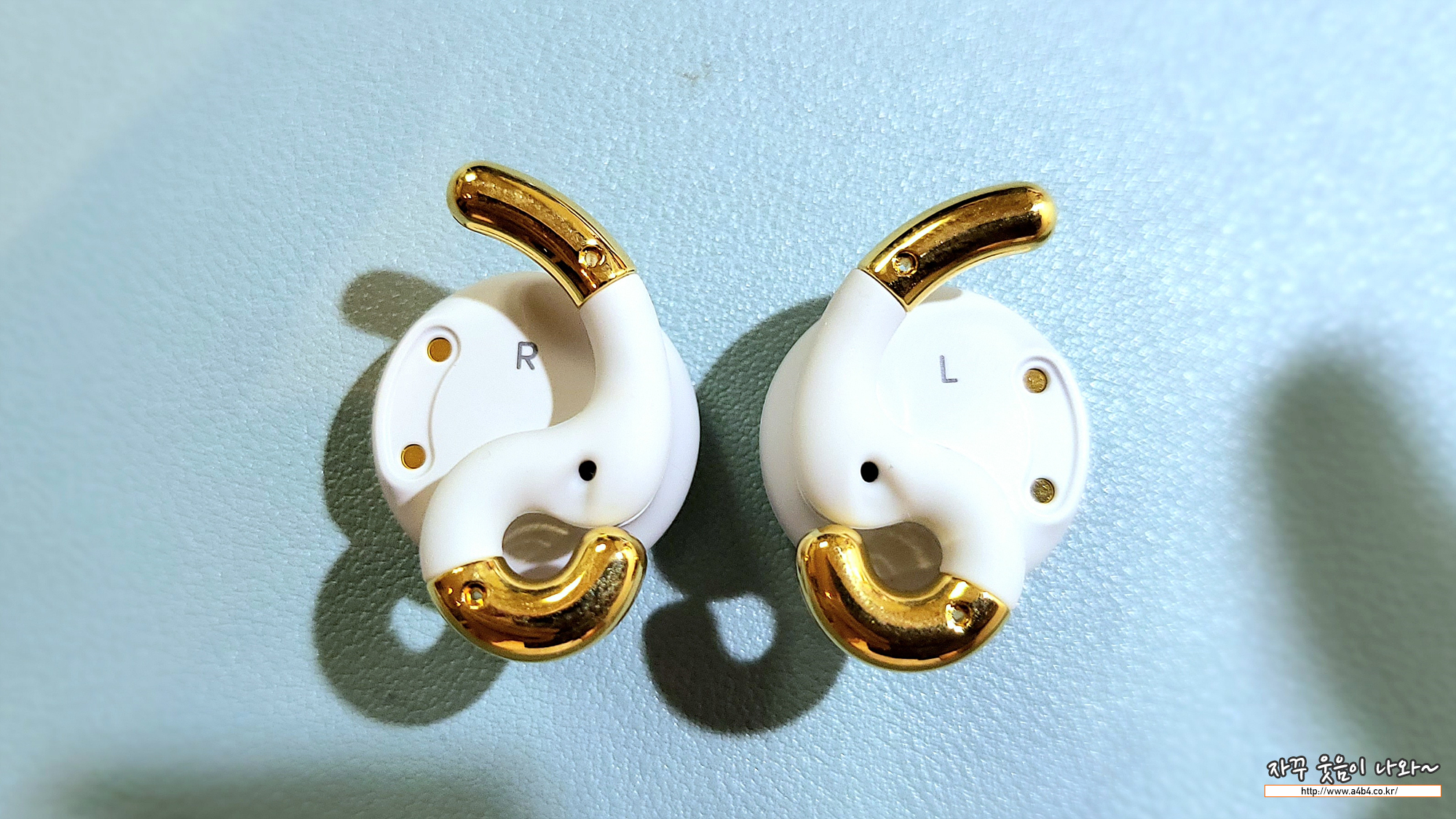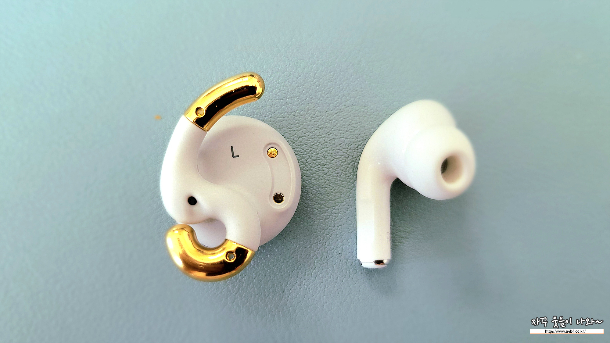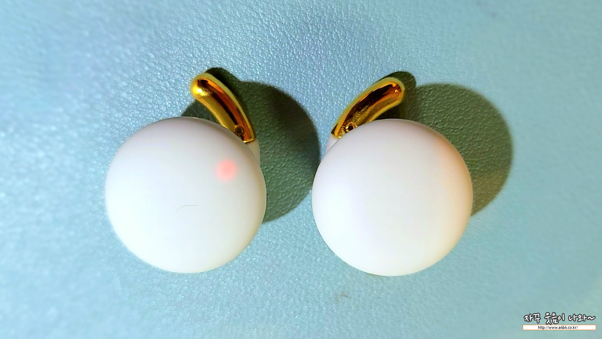 이어폰 모양은 바득알이 상각나는 디자인 입니다. 사이즈는 지름 3cm 정도로 에어팟프로와 비교해보시면 제품 사이즈를 짐작할 수 있습니다. 처음 이미지는 이어폰으로 보기에는 다소 부담되는 사이즈로 느껴지네요.