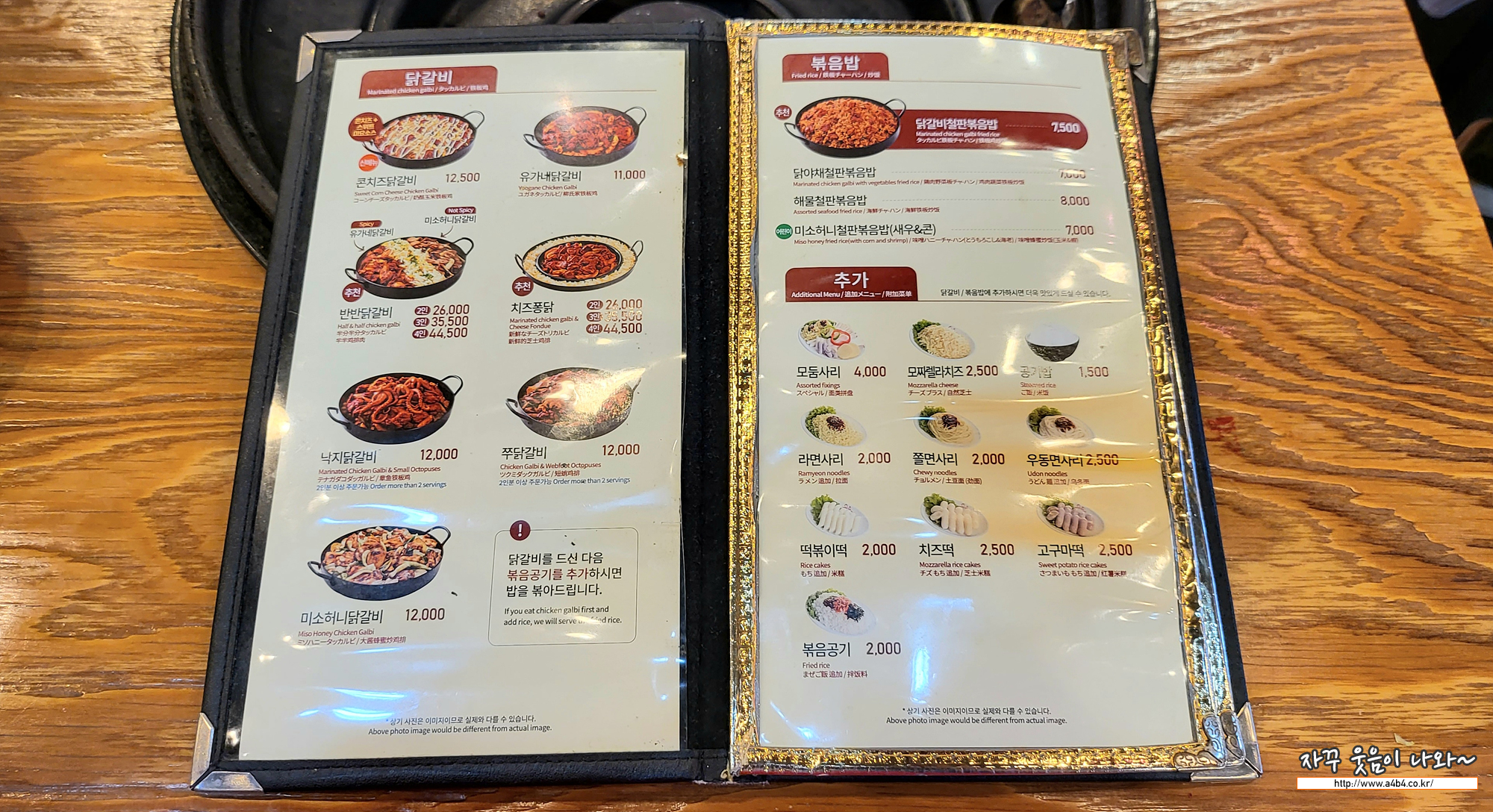 | 명동 유가네 닭갈비 메뉴 및 가격