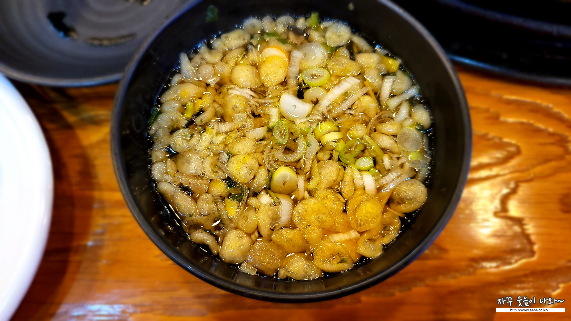 반찬은 김치와 단무지, 양배추가 나오고요. 뜨끈한 어묵 국물이 있습니다. 식당 중앙에 있는 셀프코너에서 필요한만큼 가지고 오시면 됩니다.