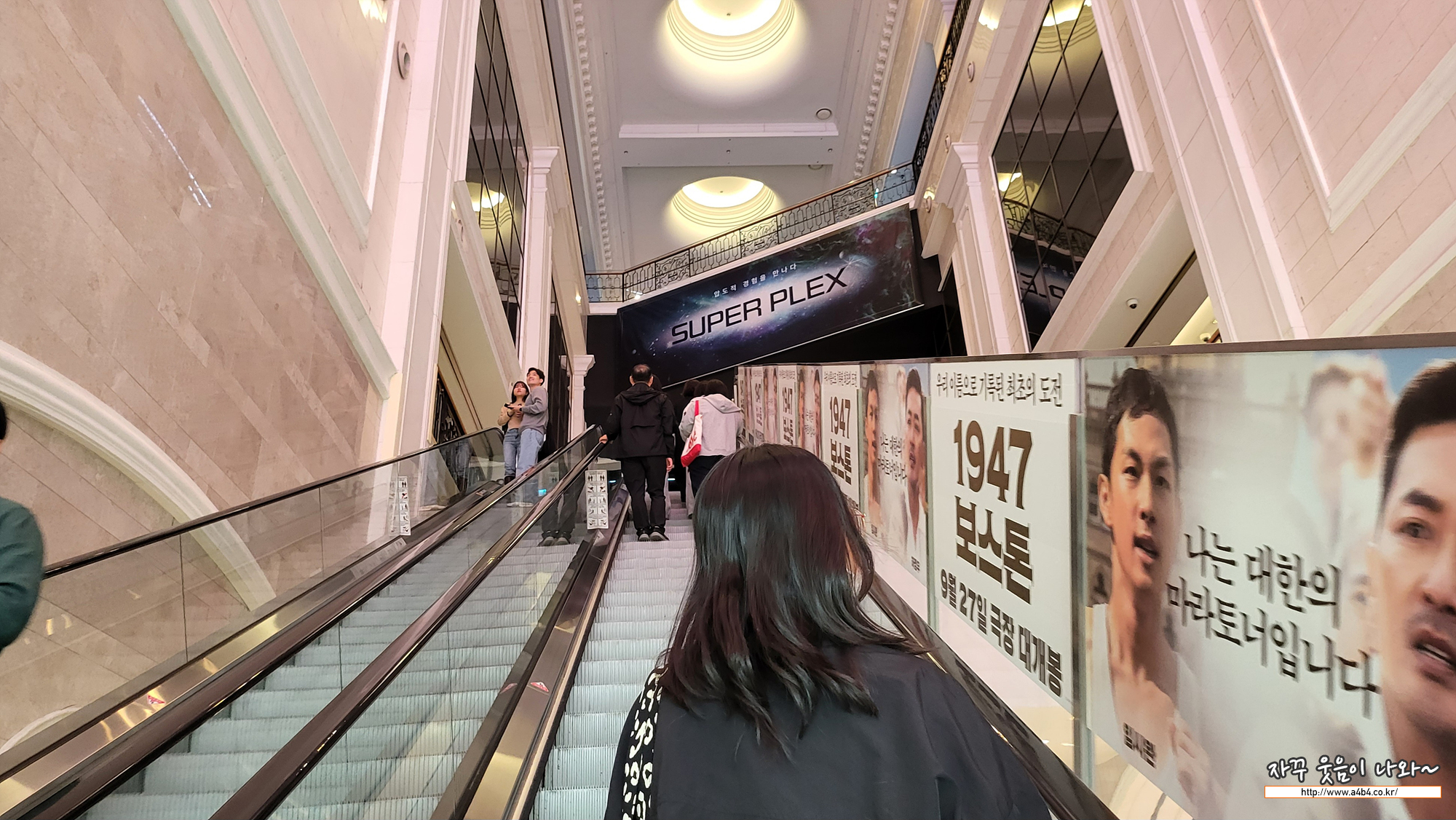 이렇게 두 번의 긴 에스컬레이터를 타고 잠실 롯데시네마 20관으로 이동합니다. 역시나 에스컬레이터 끝부분에는 이미 사고친 팝콘이 한 무더기 있더군요. 한눈 팔지 마시고 올라가셔야 합니다.