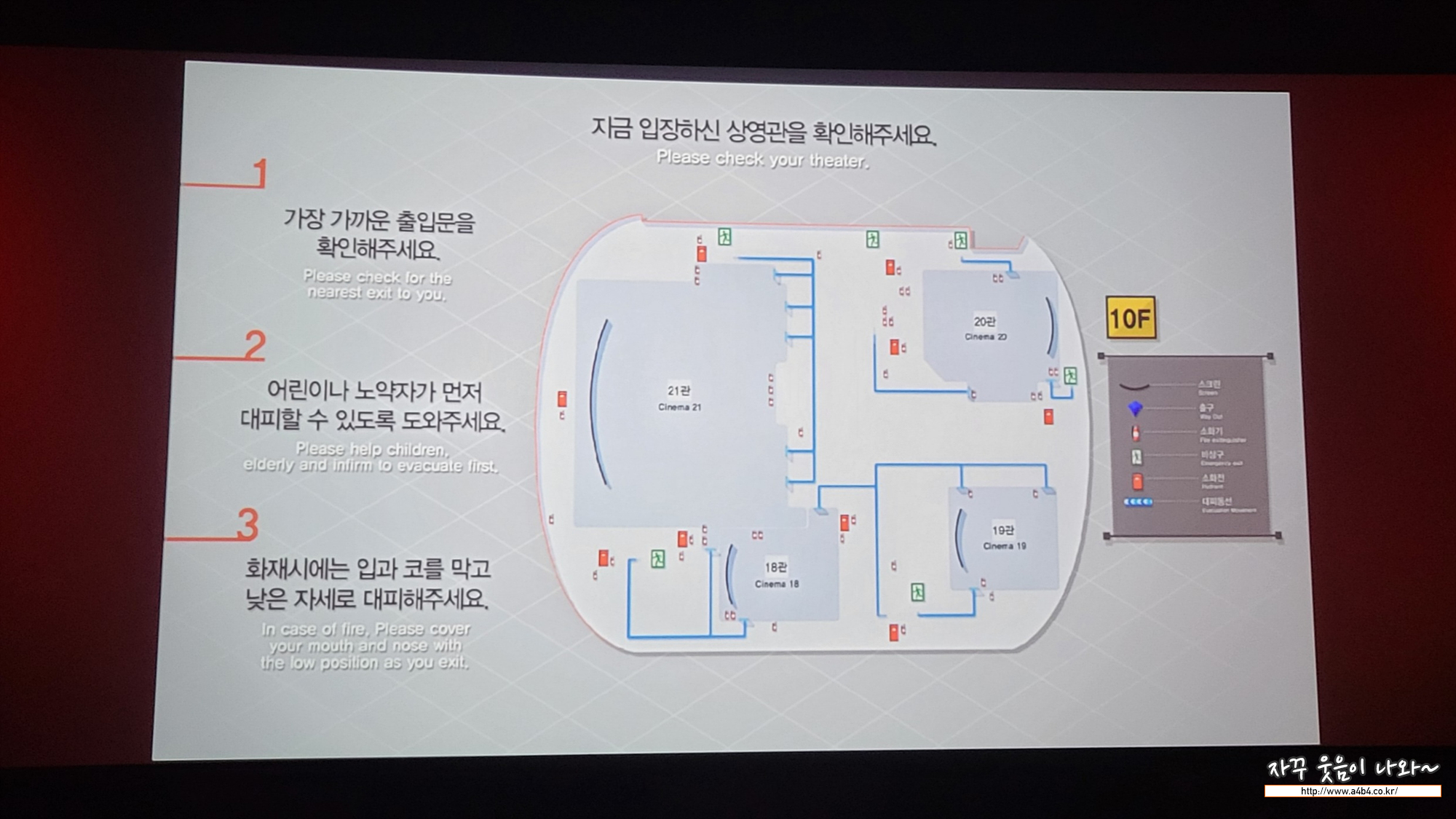 롯데시네마 월드타월 10츨에 올라 왔습니다. 총 4개관이 있고 21관 슈퍼플렉스가 가장 큰 상영관입니다. 자잘한 볼거리도 있고요.