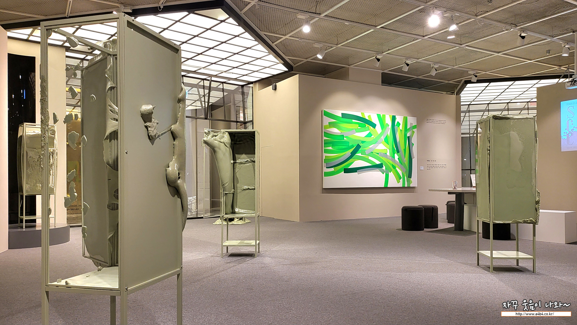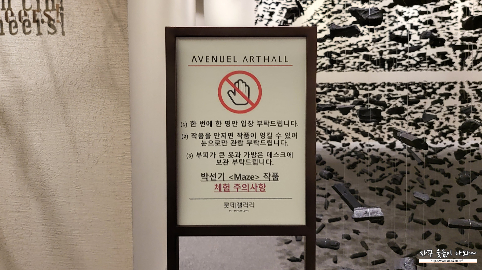 관람객은 이번 잠실 에비뉴엘 아트홀 'Santé! Cin Cin! Cheers!' 전시회에 전시된 작품 사이로 들어가서 감상이 가능한 것 같은데요. 동선 안내도 불분명하고 안해하시는 분도 자리를 비우셔서 잘못하는 작품을 망칠까봐 들어가 보지는 못하고 멀리서만 감상하게 되었습니다.