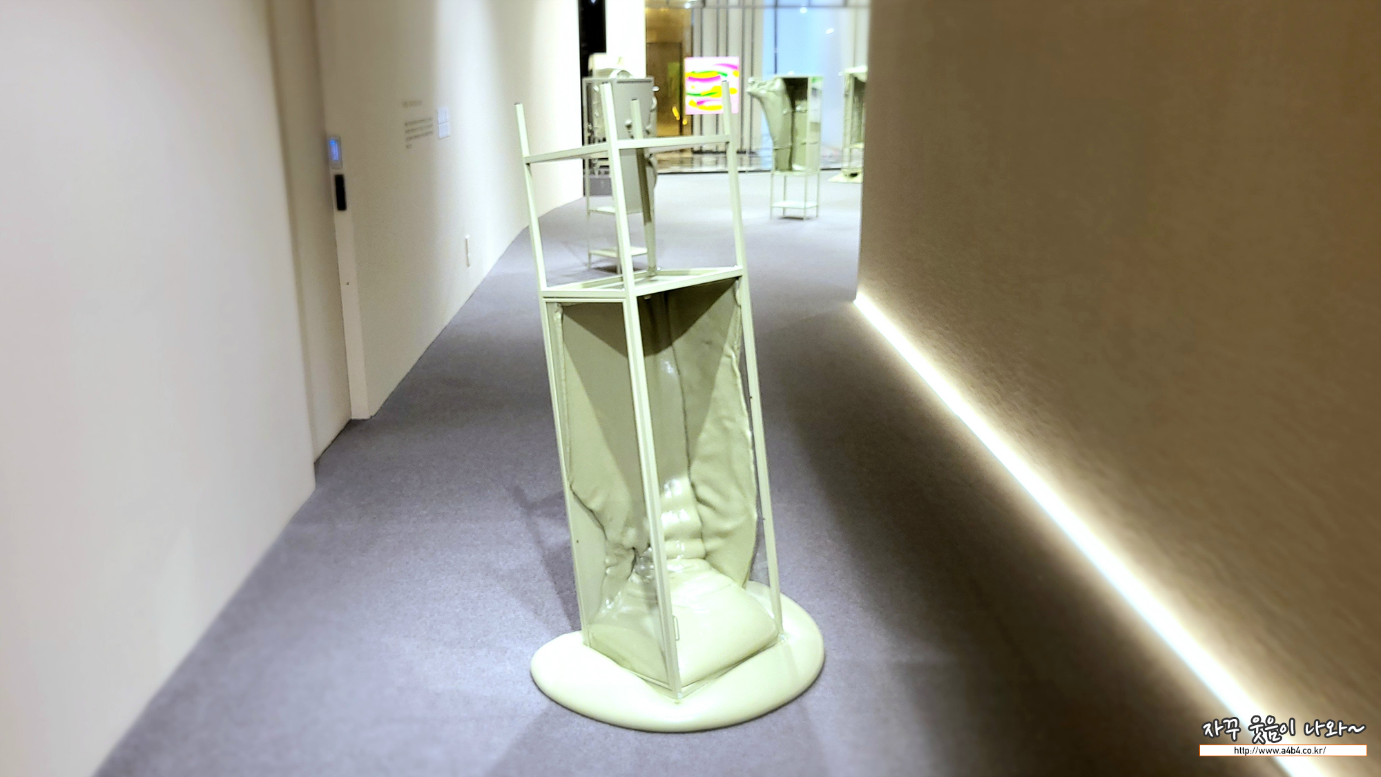 최태훈 조각가는 이번 롯데갤러리 잠실 전시회에서는 살-톤이라는 연작 시리즈를 선보이고 있습니다. 특히 철재 수납장에 발포 우레탄을 이용하여 형성되는 이미지로 만든 작품을 선보이고 있습니다.