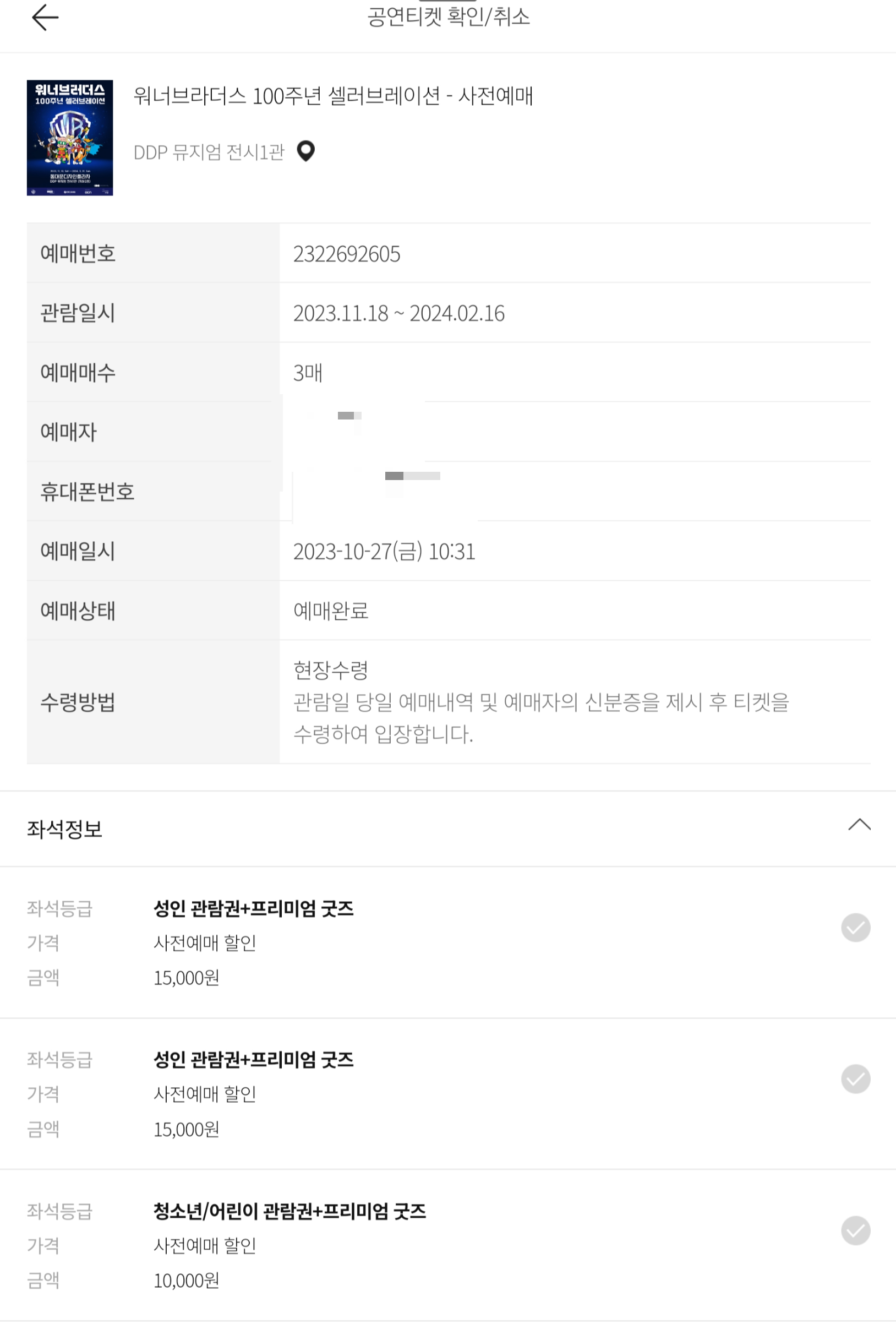 워너 브라더스 100주년 셀러브레이션 티켓은 성인 기준으로 2만 원입니다. 저는 얼리버드 티켓을 통해 15,000원에 구매 했는데요. 지금도 온라인에서는 10% 할인하고 있어 큰 가격차이는 나지 않습니다.