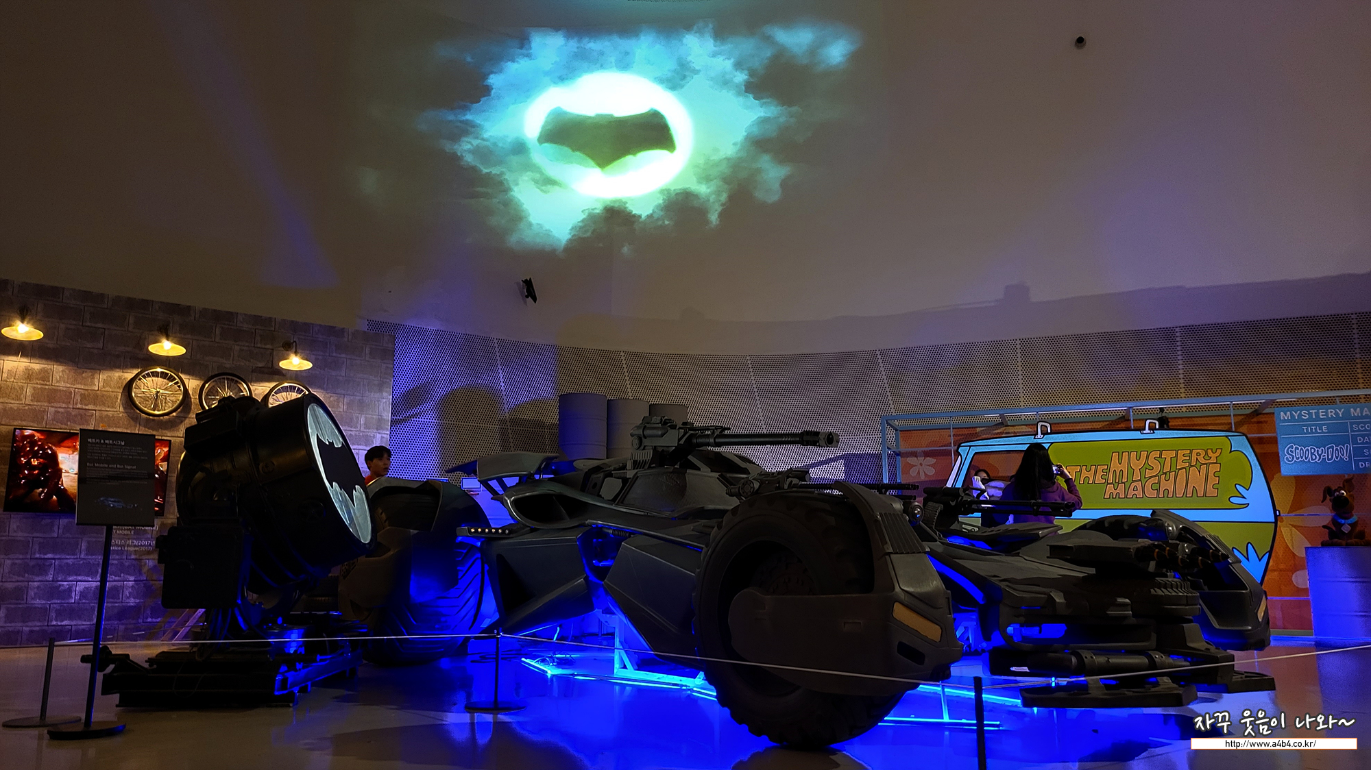 공간 입구에서 거대한 구조물이 보이네요. 그리고 천장에 비추는 배트맨 시그널이 보이네요.