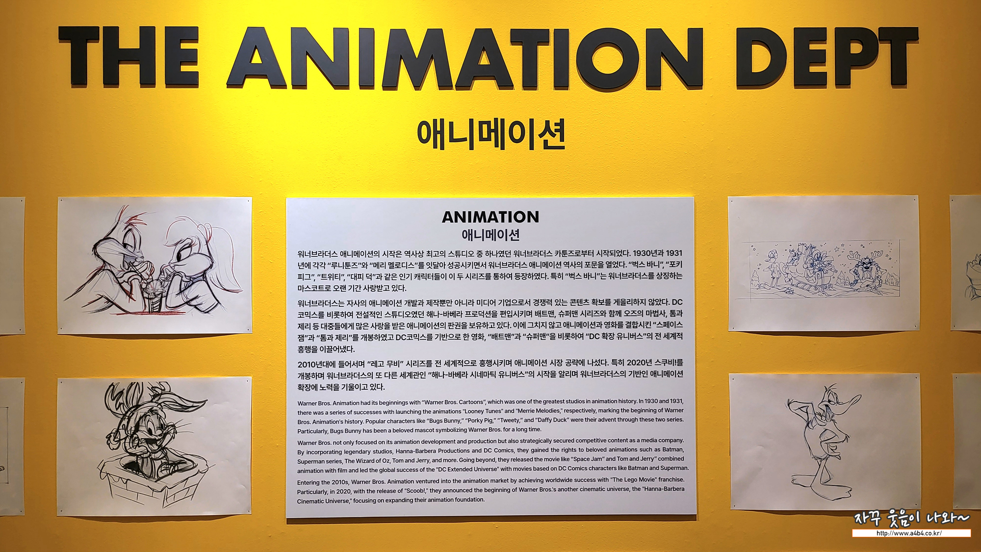 그리고 워너브라더스 애니메이션의 역사를 보여주는 수많은 스케치를 만날 수 있습니다.