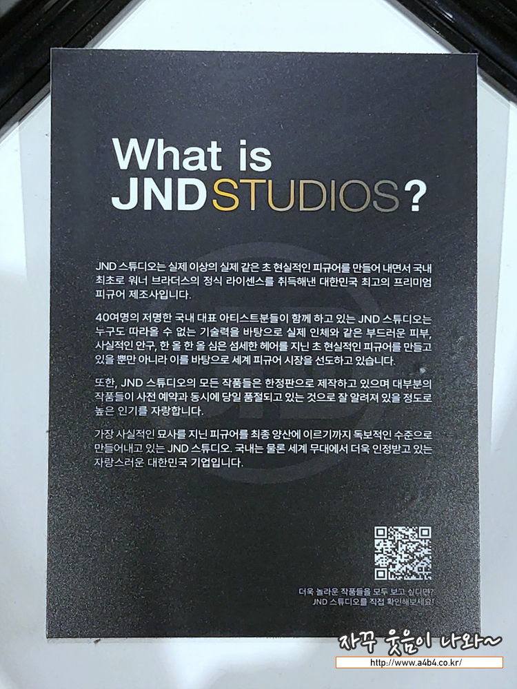 국내 최초로 워너의 라이센스를 받은 JND 스튜디오의 피규어들이 전시되어 있는 공간입니다.