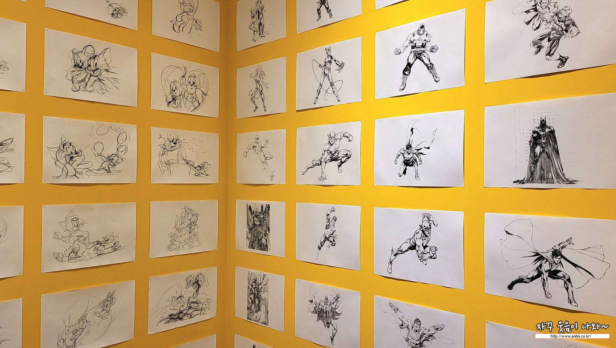 왼쪽의 톰과 제리 오른쪽에 DC 히어로의 대비가 상당히 인상적인 부분을보여줍니다.