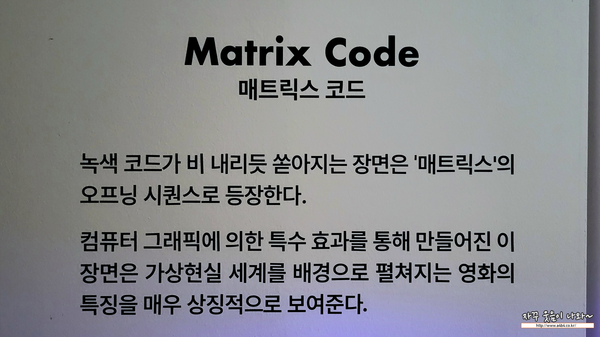 특수효과 타이틀에 비해 전시된 공간은 이 매트릭스 공간 딸랑 하나, 그리고 매트릭스 3부작에 대한 어떠한 언급도 없었다는... 과연 이번 전시회 주관사가 어디인지 다시 한 번 확인해보게 하네요.