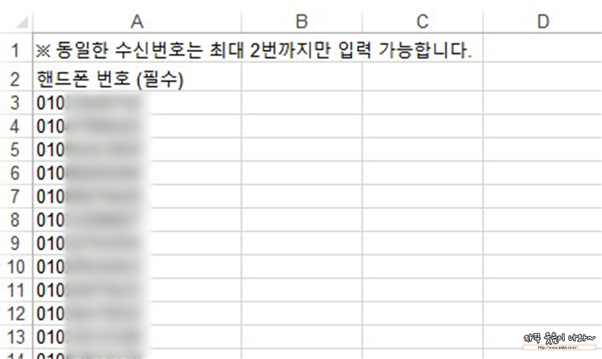 1. 100~300명정도 휴대폰번호 엑셀에 정리해서 한 번에 업로드가 가능하게
