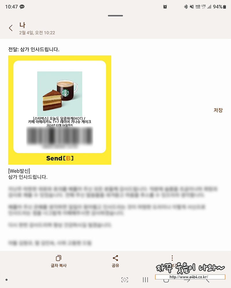 저는 장례식장에 조문오신 분들을 대상으로 답례 기프티콘을 보내는 것이어서 오신 분들께 감사의 말씀을 적었습니다. 문자는 최대 700바이트 한글로 350자입니다. 생각보다 상당히 긴 글입니다. 문자메시지로 보내기에는...