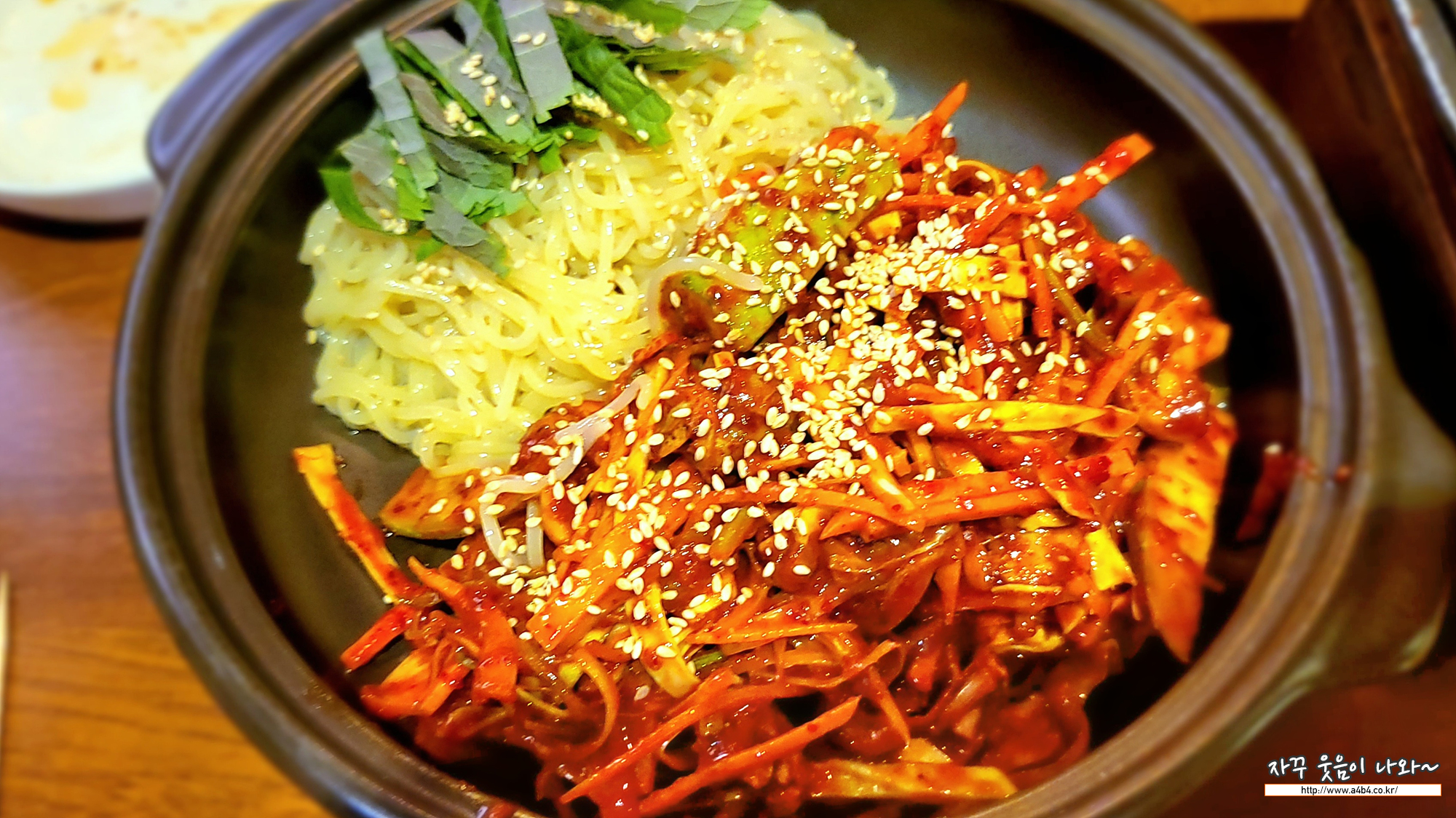 정확하게는 골뱅이 쫄면 무침입니다. 쫄면과 야채, 그리고 골뱅이가 매콤한 양념과 함께 나오는데요. 우선 골뱅이는 푸짐하게 들어 있습니다. 쫄면 식감도 좋고요. 다만 투다리 골뱅이무침 맵기는 약간 매운편에 속합니다. 매운것을 잘 드시지 못하신다면, 약간 덜 맵게 해달라고 주문하세요.