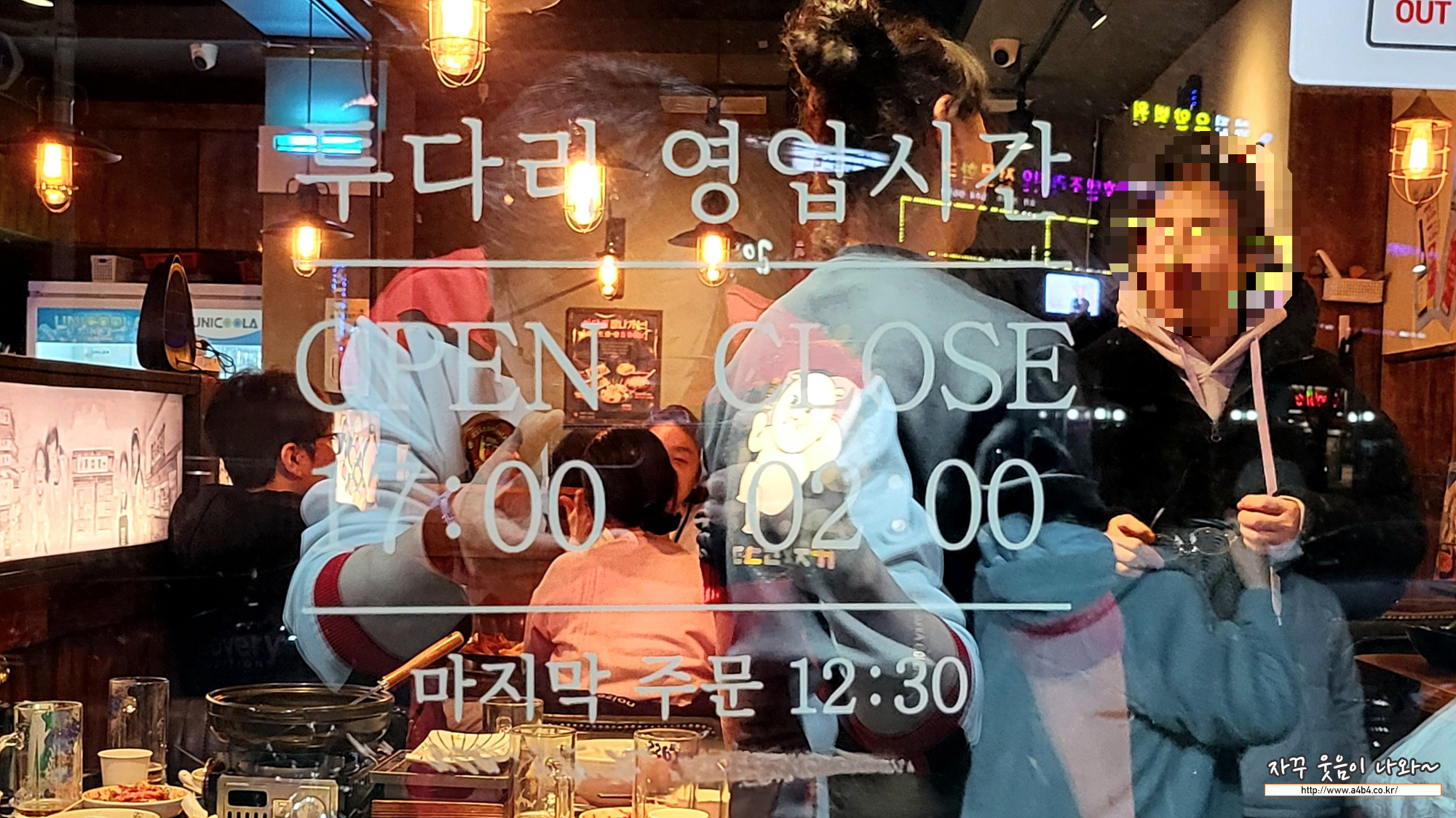 투다리 경인점 영업시간은 17시에 오픈 새벽인 02시에 종료합니다. 라스트오더는 밤 12:30분 입니다. 투다이 휴무일은 매주 일요일인데요. 최근 불경기로 장사가 너무 안되어서 일요일도 오픈할까 고민중이시라고 하시네요.