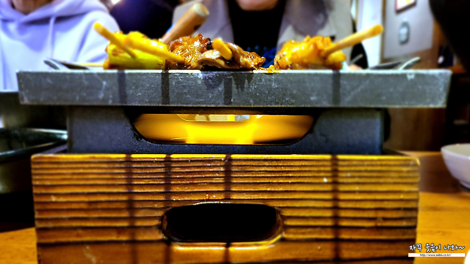 1인용 화로에 올려 나오고요. 주방에서 이미 구워 나오니 꼬치가 따뜻하게 유지되는 역할을 합니다. 그리고 아래와 같이 소스 3종이 나오는데요. 저는 소스를 그렇게 좋아하지 않아 꼬치맛 그대로 즐겼네요.
