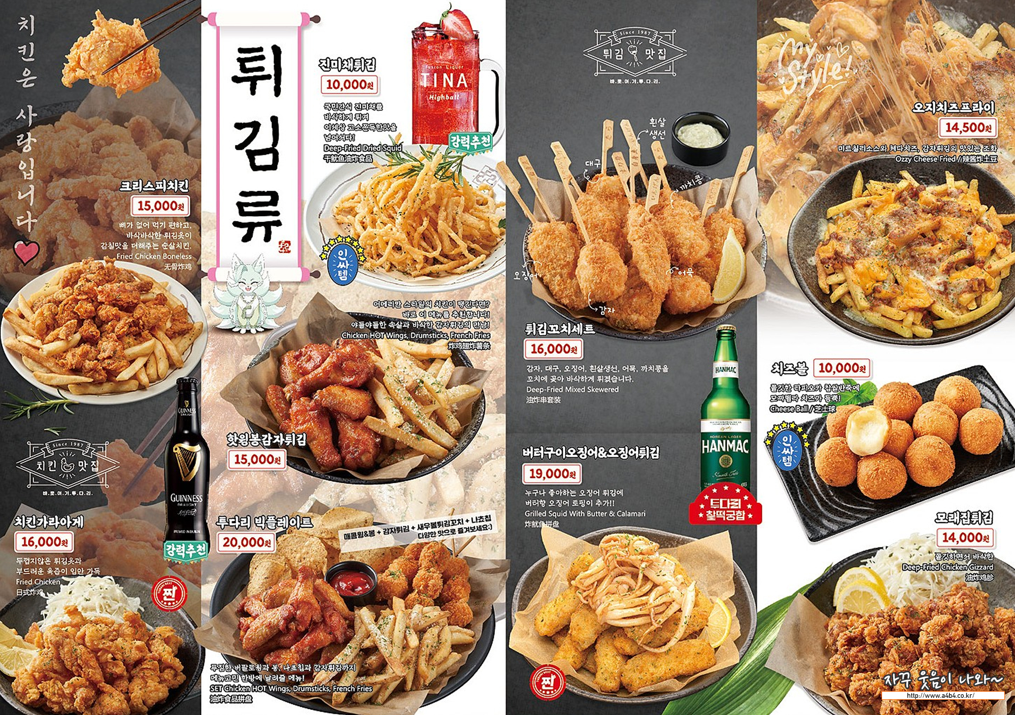 튀김류 : 진미채튀김, 치킨가리아게, 치즈볼