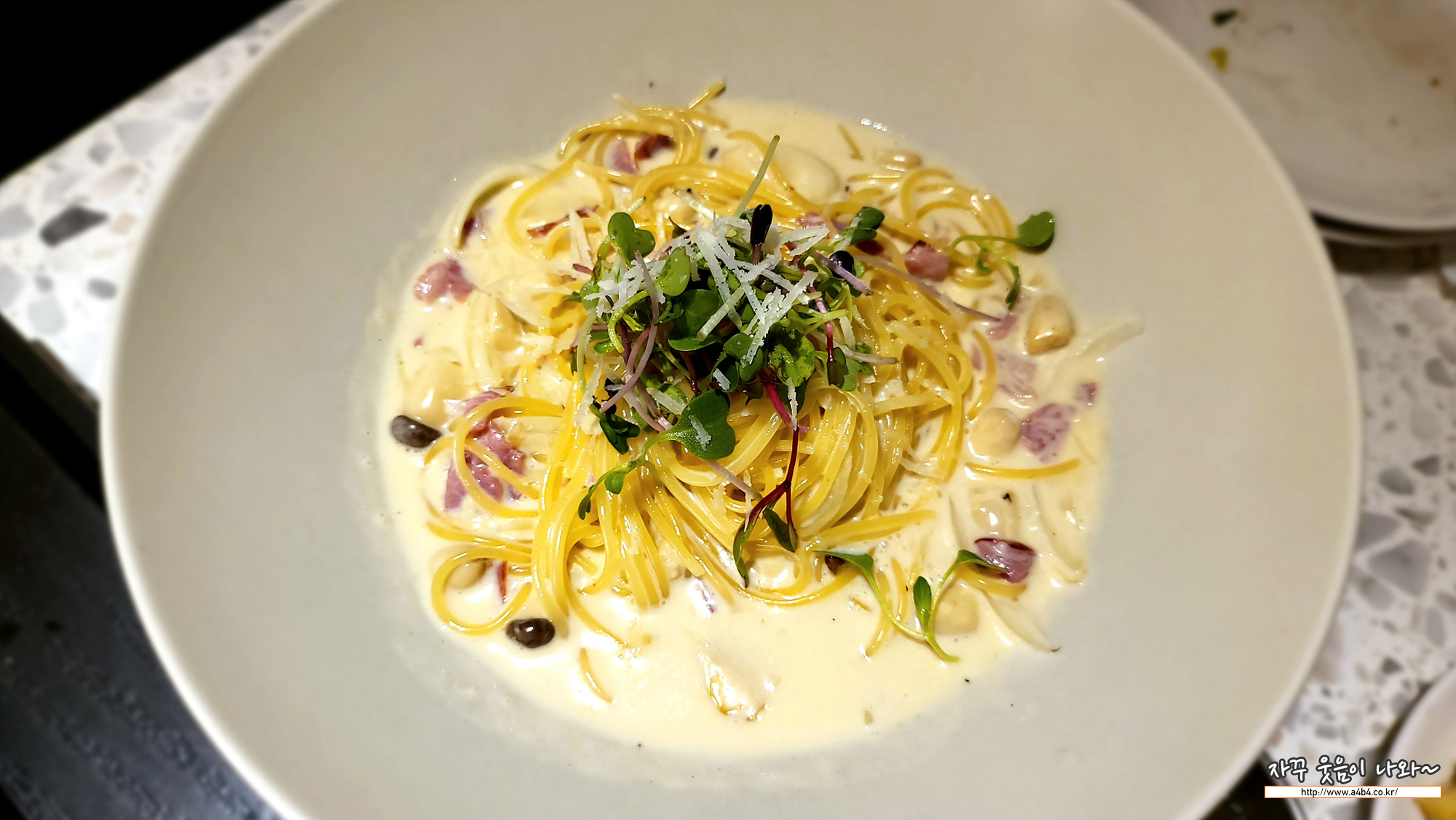 아주 전형적인 저 개인에게는 느끼한 느끼하면서도 고소한 맛을 보여주는 크림파스타입니다. 크림 파스타를 좋아하시는 분에게는 추천 드리는 계양 브런치가든 메뉴 중 하나입니다.
