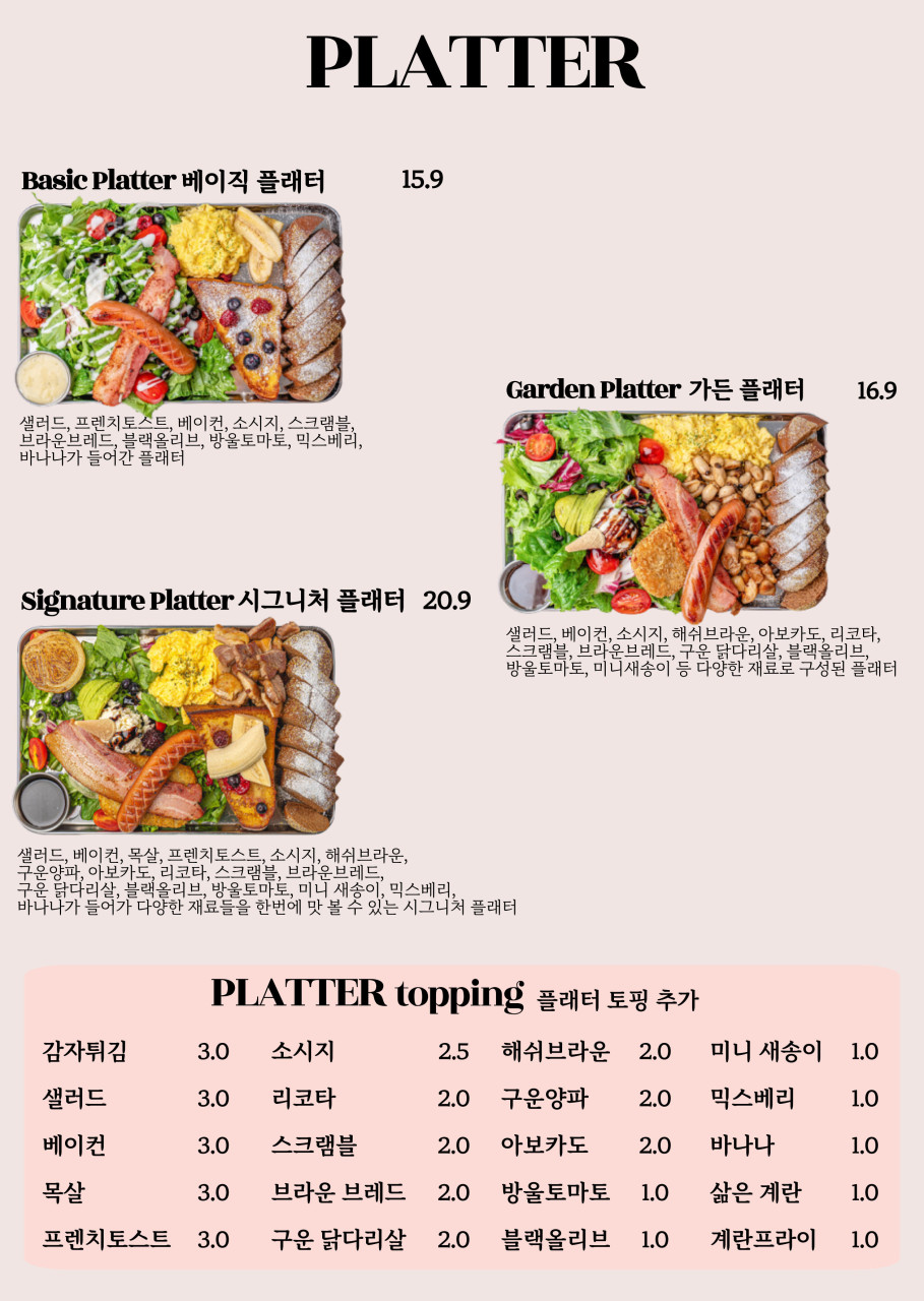 계산동 브런치가든에서 가장 매력적인 메뉴가 바로 플래터가 아닐까 합니다. 방문하신다면 꼭 주문 메뉴에 포함해 보세요.