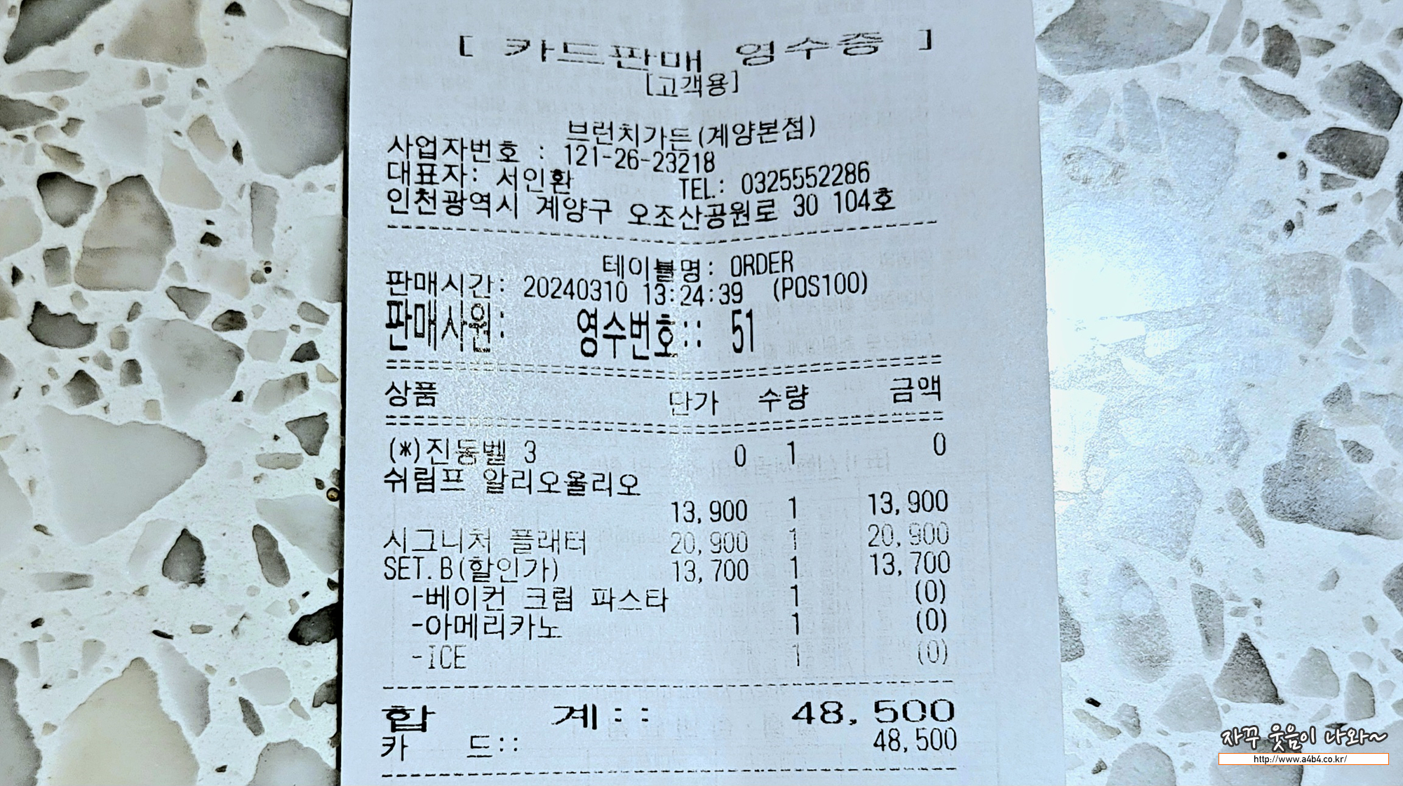 브런치 가든 계양구청점 메뉴 및 가격입니다. 우선 가성비 좋은 계양구 맛집이라는 생각입니다.