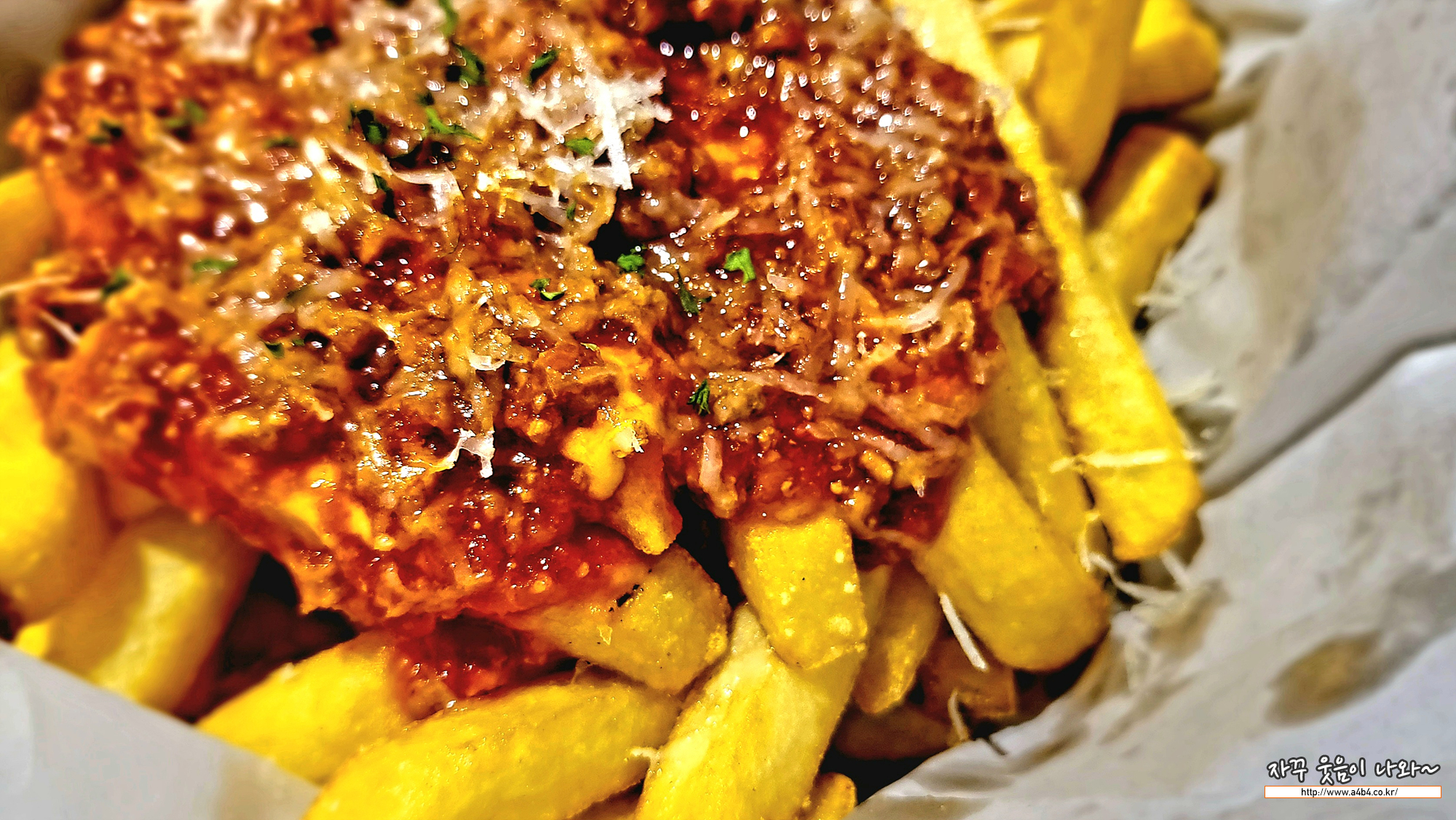 이곳 브런치 가든 계양구청점 볼로네제 치즈 프라이 메뉴는 튀긴 감자위에 올려 있습니다. 전형적인 맥주 안주!!! 대낮부터 낮술 한 잔 할 수 없어서 아쉬웠네요. 차도 가지고 왔고요.