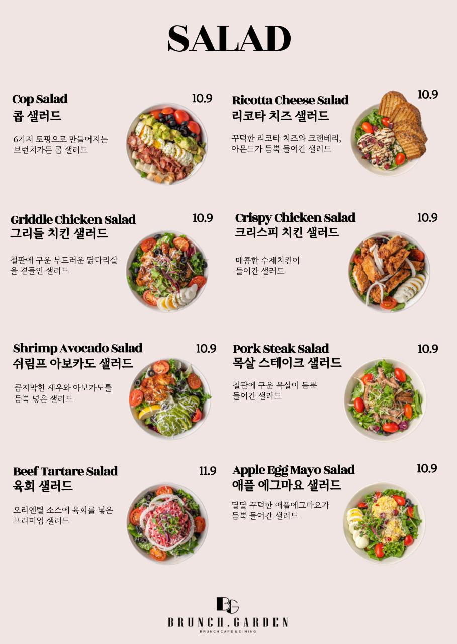 샐러드는 1만 원 초반대, 피자는 1만 원 중반 가격에 만나볼 수 있습니다. 이번 방문에서는 두 가지 메뉴는 주문하지 않았네요. 다음에 방문하게 된다면, 그때 주문해보고 리뷰 추가 할께요.