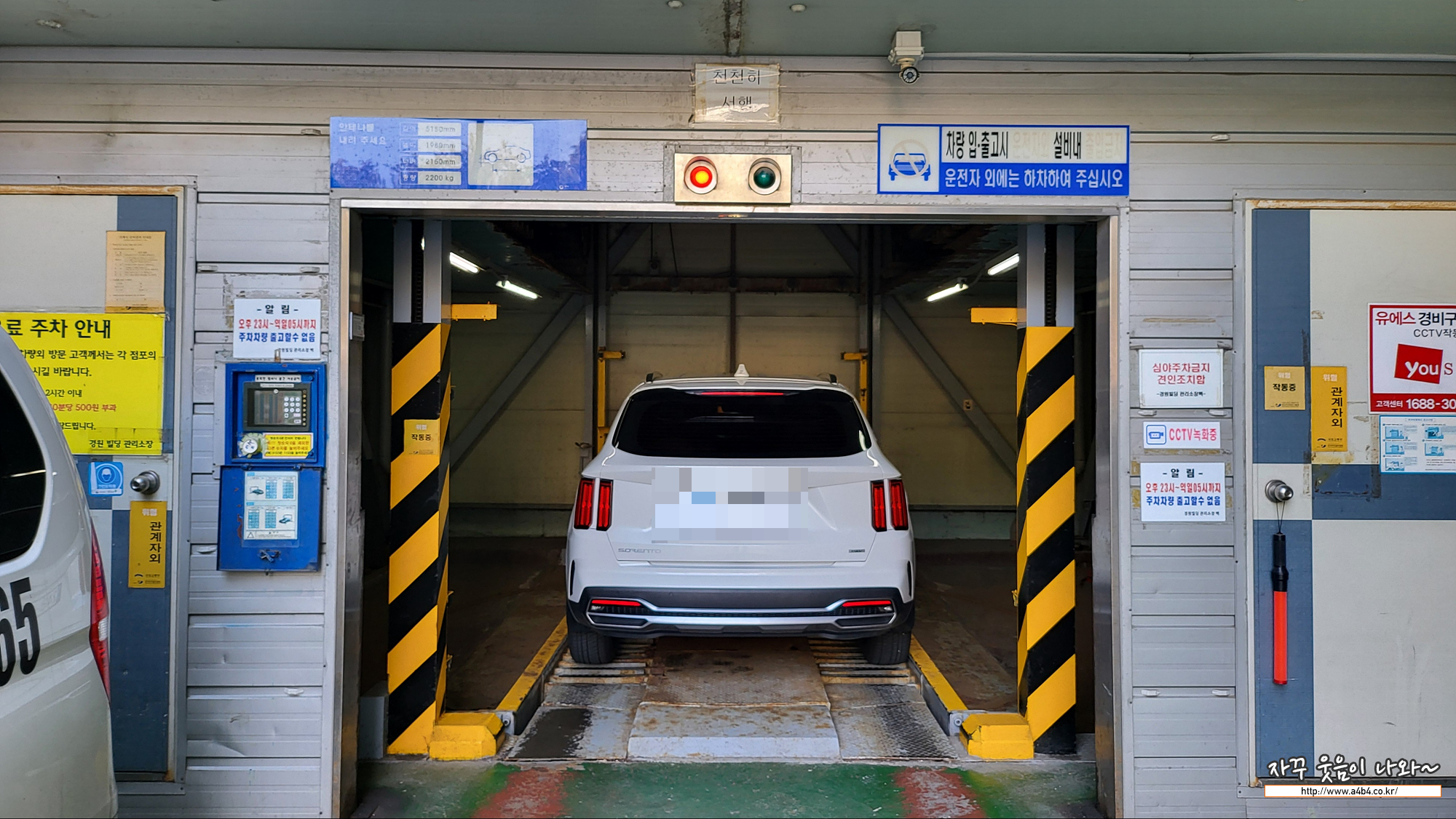 계산동 브런치가든 주차장은 셀프 타워주차장입니다. 이런 기계식 주차장을 셀프로 주차해보신 분은 많지 않으실 것 같습니다. 그리고 중대형 차량은 상당히 좌우 간격 여유가 없습니다. 아래 차량은 쏘렌토 하이브리드이니 간격 및 높이 고려하세요.