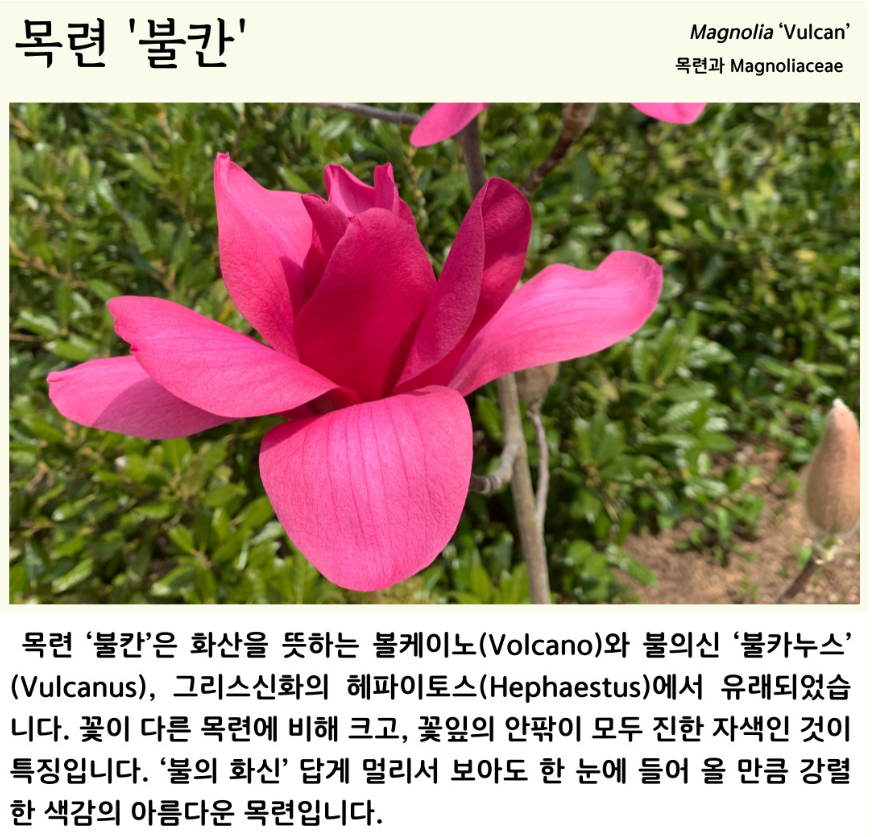 붉은 빛을 보이는 목련인 볼칸, 근별목련 도나, 빅버사 등을 만나볼 수 있는데요. 제가 방문한 4월 초에는 해당 목련들은 만개해 있네요. 다만 다른 목련들은 아직 봉오리로 남아 있어서 4월 중에 방문하시면 천리포 수목원 목련축제를 즐기기에는 딱 좋을것 같습니다.