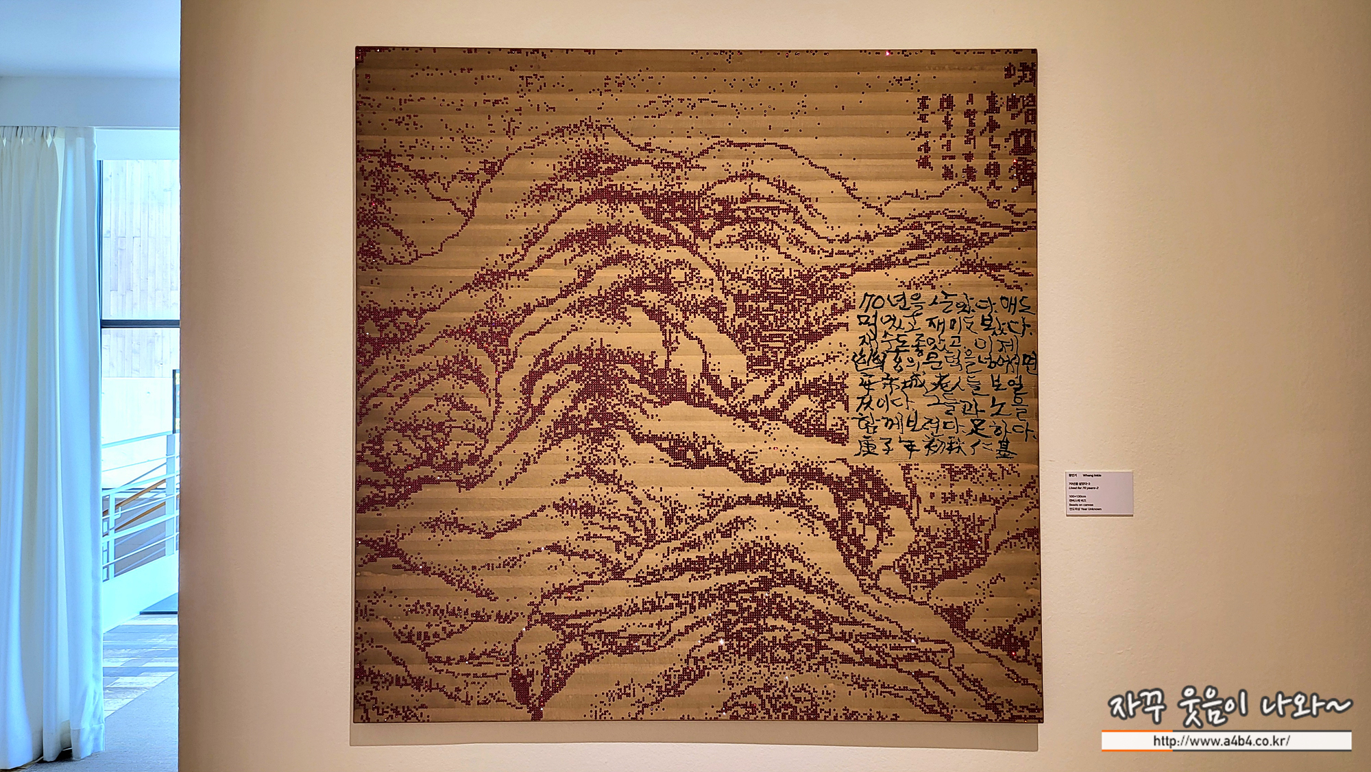 대형 작품 〈오래된 바람 1101>은 동양 고전 산수화의 이미지를 디지털 픽셀로 전환함으로서 현대적으로 재해석 하여 많은 주목을 받은 '디지털 산수' 대표작 중 하나로 이번 소마미술관 개관 20주년 특별전 '드로잉, 삶의 철학을 그리다' 전시회에서 만나볼 수 있습니다.