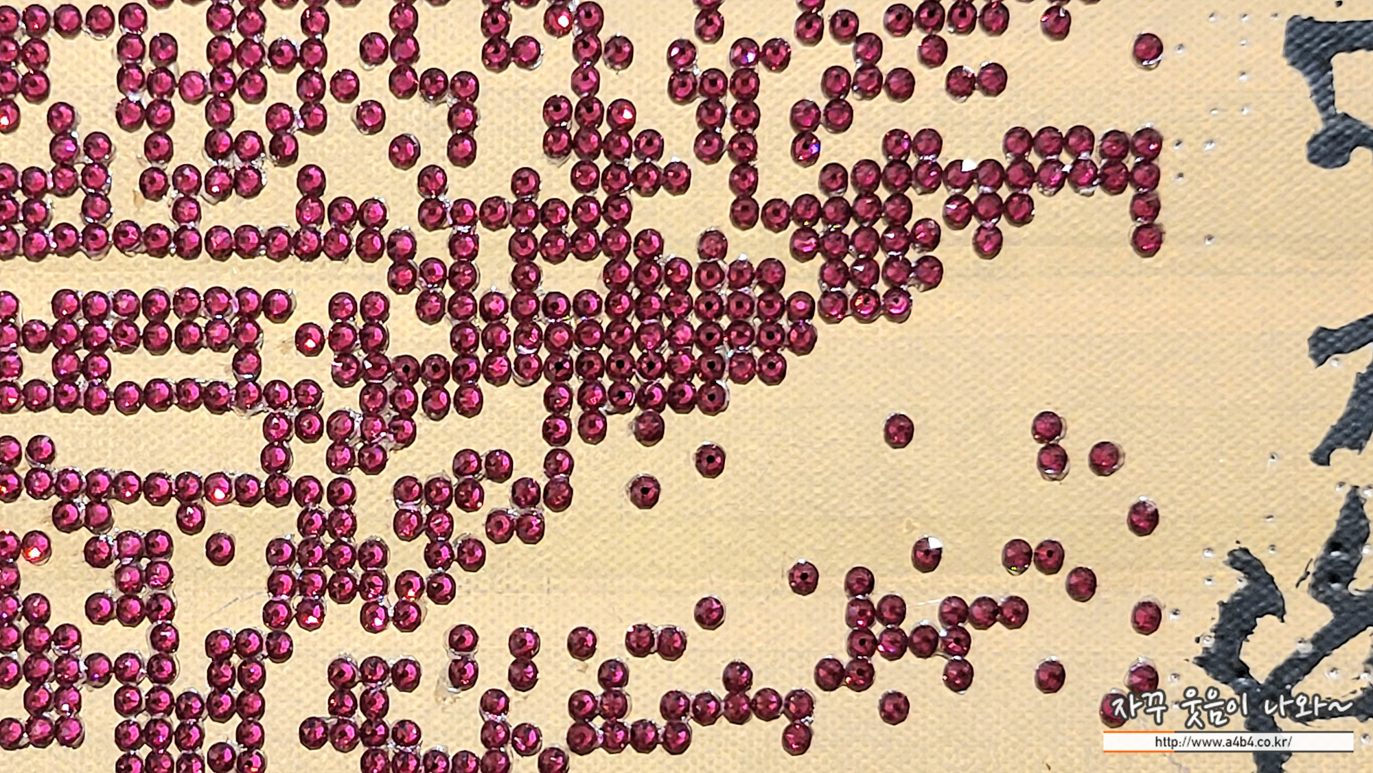 황인기 작가의 이 산수는 붉은색 비즈로 작업한 작품