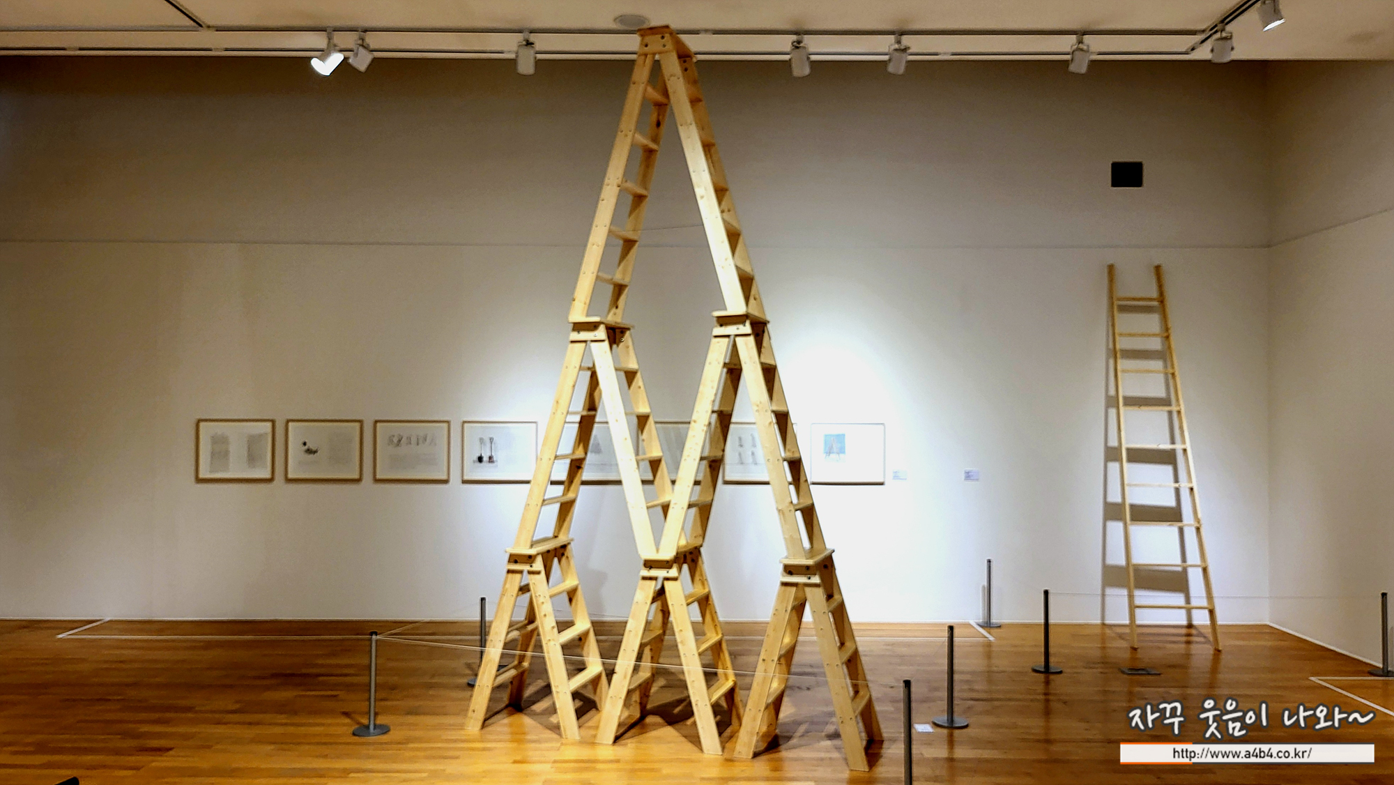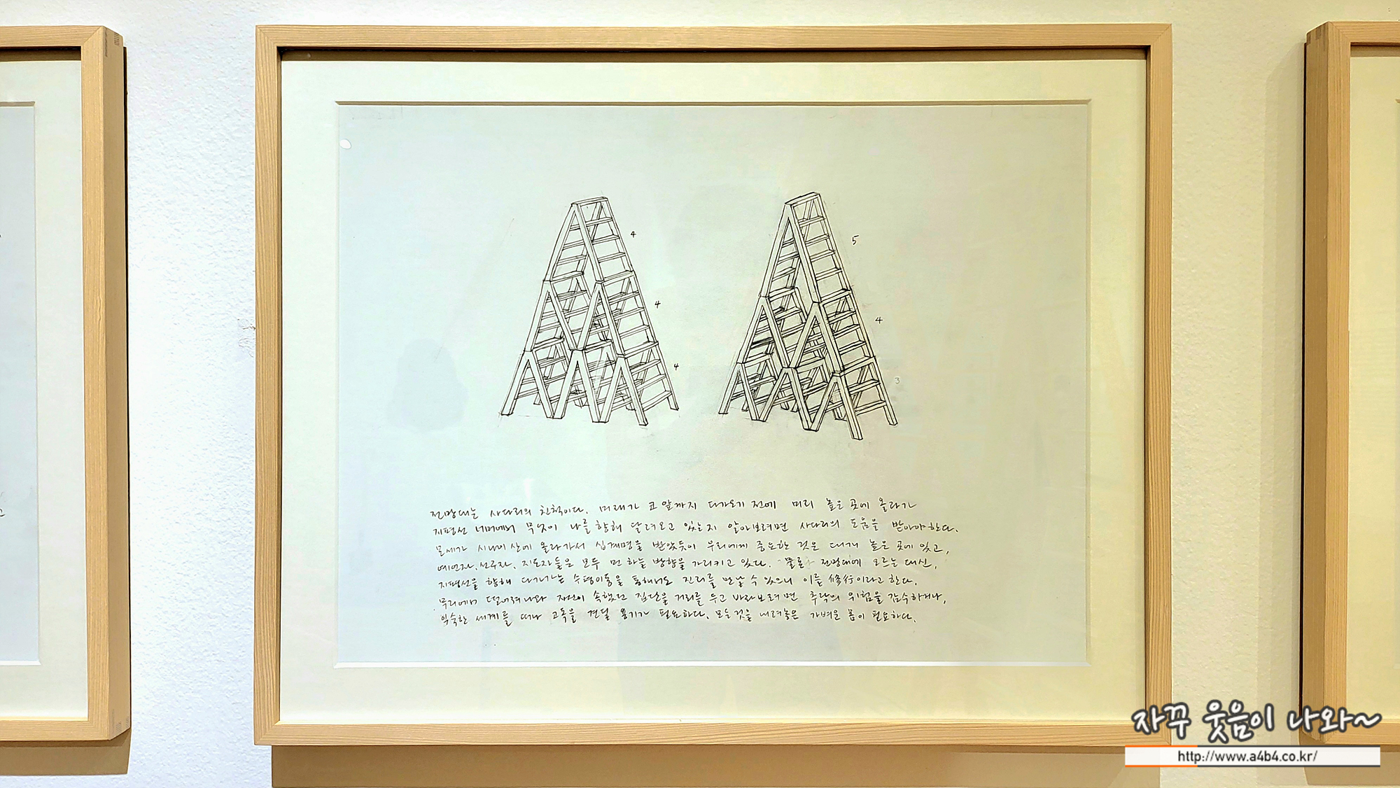 옆에는 사다리와 삽 연작 스케치 및 작가가 생각하고 의도한 작품에 대한 설명이 있지만...