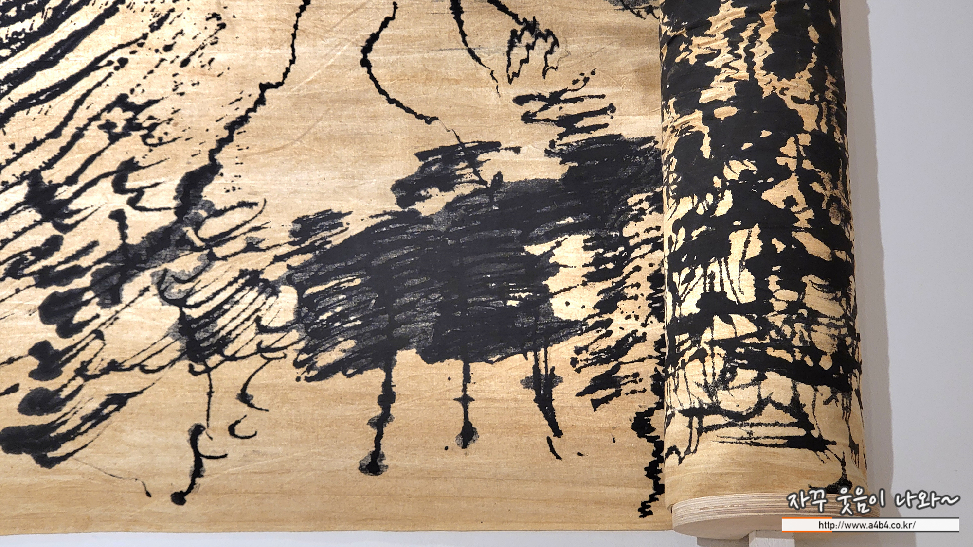 황인기 작가의 공간으로 들어가면서 가장 먼저 눈에 보이는 가장 큰 작품, 오래된 거대한 산수화를 보는 느김이었느데요. 작품 앞으로 다가가면서 놀라운 경험을 하게 됩니다.