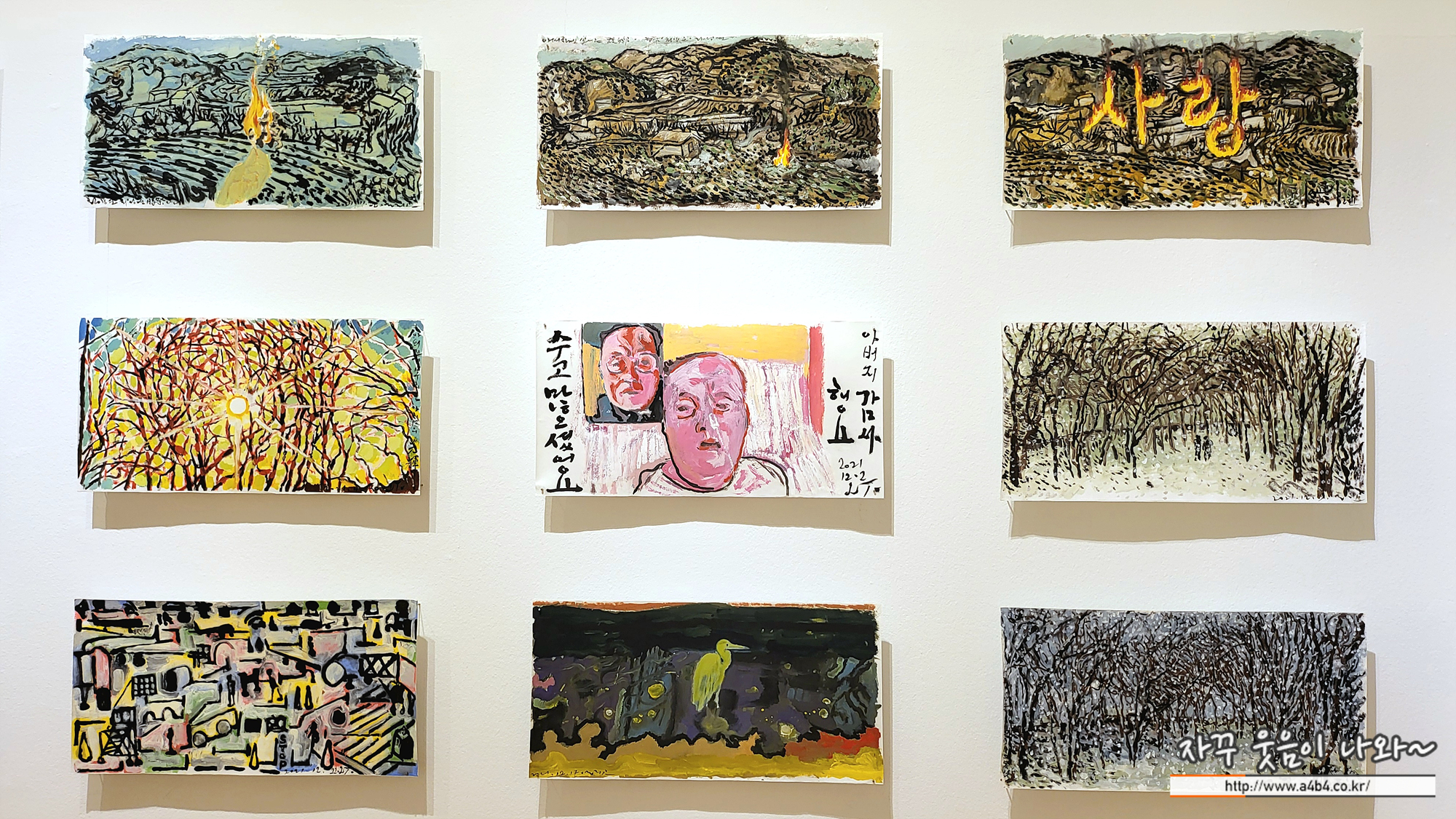 인간의 내면에 대한 관심을 바탕으로 개인의 삶에서 벌어지는 상황과 사건을 소재화 한다. 또한 그 소재들이 모여 세대를 관통하는 소통을 이끈다. 전시된 작품 〈분수>는 작품활동 초기부터 현재까지 이어지는 생명성과 에너지에 대한 상징이다. <봄-세상의 시작>은 시간의 소용돌이 속에 일상적 사물이 휩쓸리는 모습이다. 만물이 소생하는 봄이라는 계절에 빗대어, 우리 주변의 사물들도 새롭게 자라고 순환하는 모습이다. 안쪽 전시실에서 마주하게 되는 <또 다른 오늘>은 2021년부터 2022년 사이 10개월간, 임종을 앞둔 아버지에게 매일같이 보냈던 그림 80여점을 엮은 작업이다.