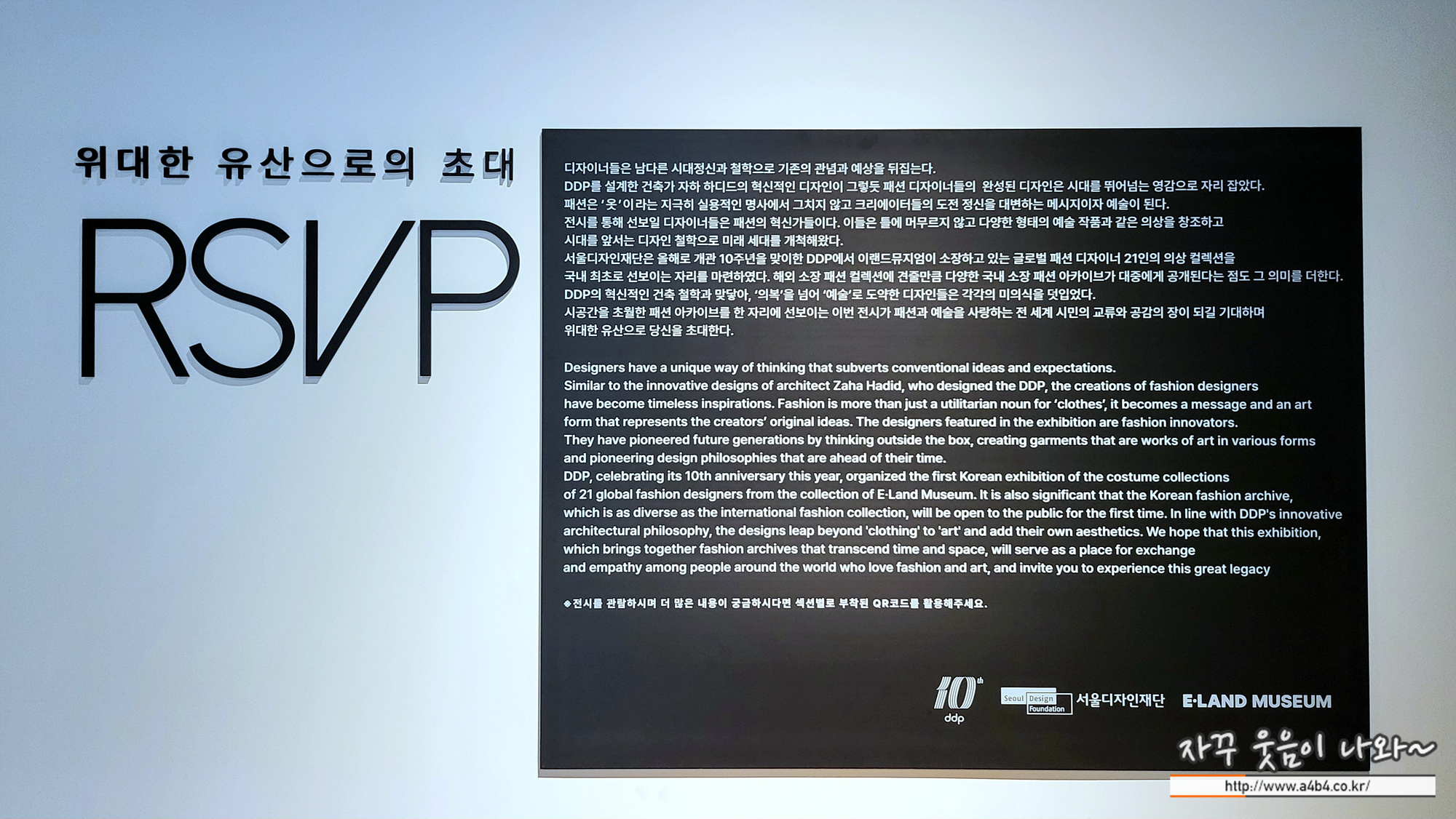 오늘 전시회 방문후기는 동대문DDP 이간수문전시장에서 열리고 있는 무료 패션 전시회인 'RSVP: 위대한 유산으로의 초대' 관람후기입니다.
