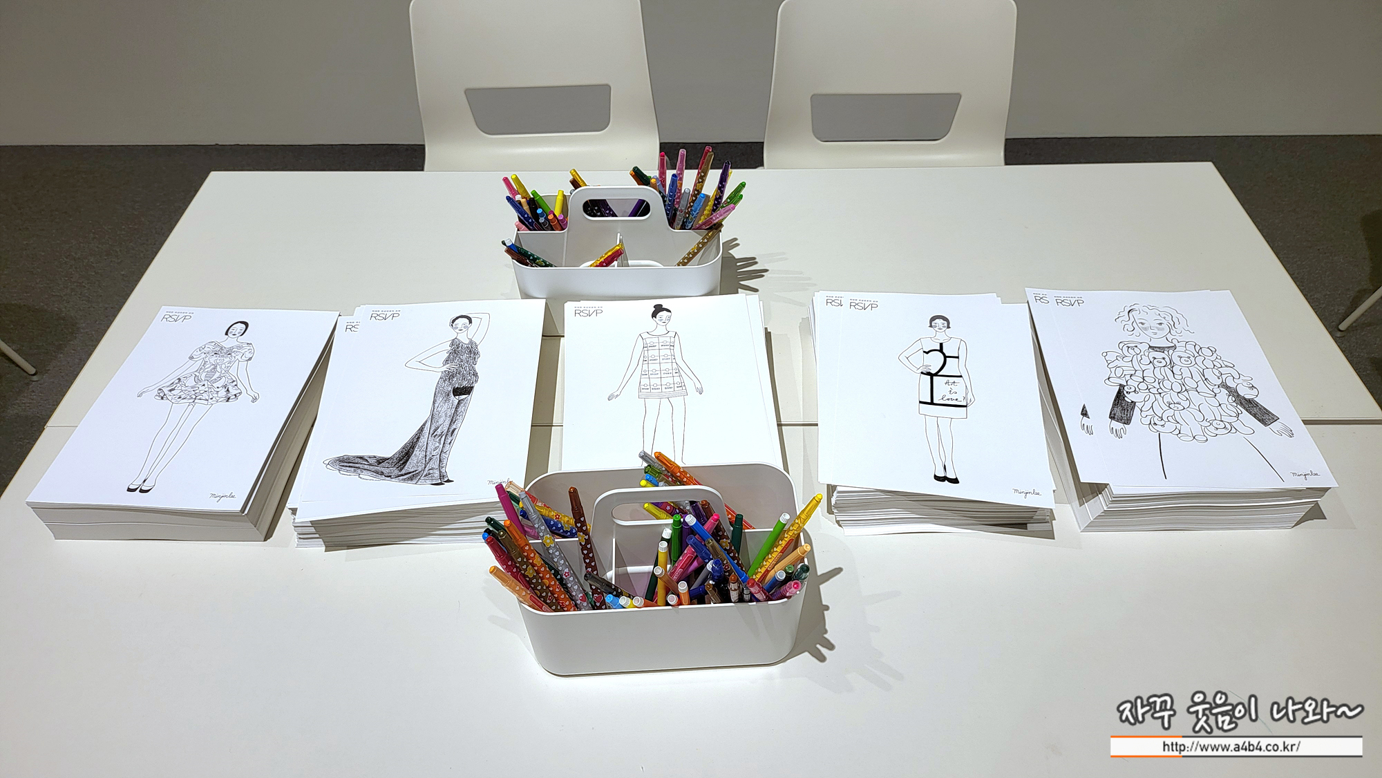 RSVP: 위대한 유산으로의 초대 전시의 마지막에 만날 수 있는 ‘체험존’에서는 이민진 작가의 일러스트로 제작된 전시 컬렉션을 관람객이 직접 색칠해 볼 수 있습니다.